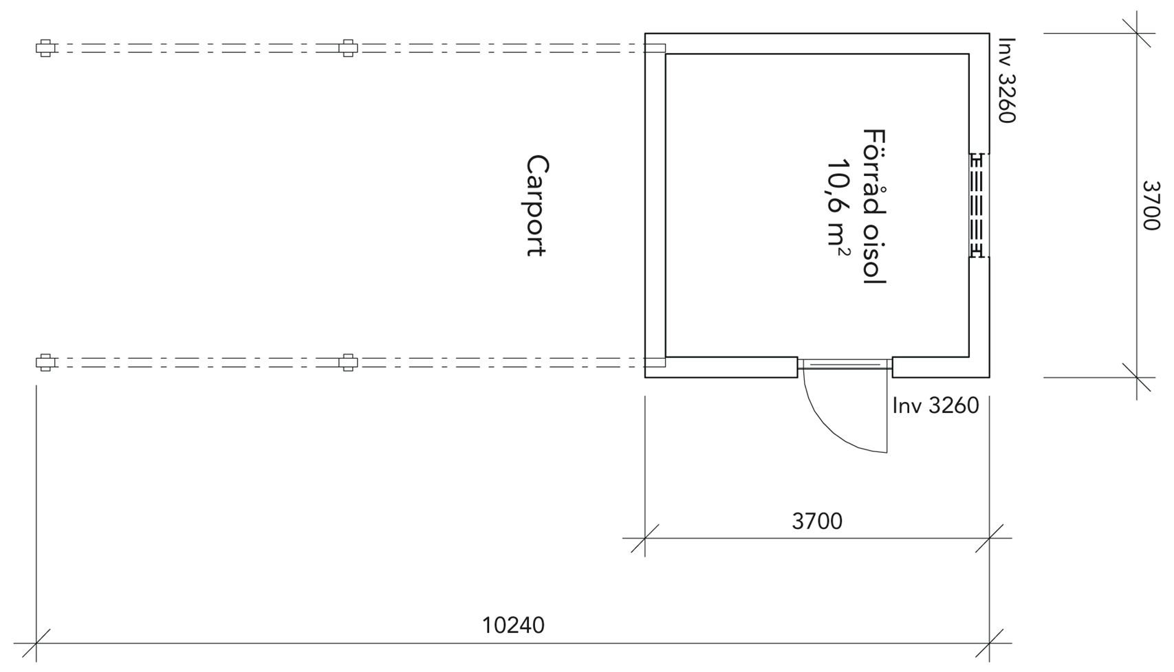 Invändig yta: 10,6 m² (förrådet)