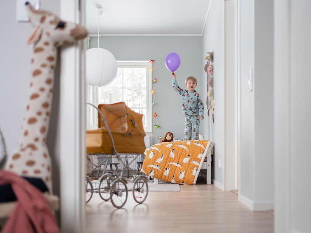 Både stort vardagsrum och allrum skapar gott om plats för alla i familjen att ha vänner på besök, samtidigt. Tack vara badrummets centrala position så kommer ni till och med träffas ibland.