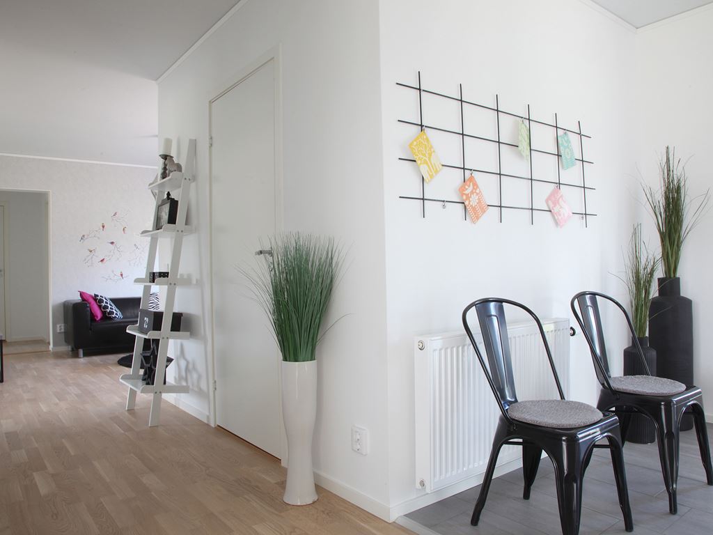 I entrén finns klädkammare med 10,2 kvadratmeter väggyta och 2 kvadratmeter golvyta, vilket ger 5 kubikmeter till praktisk förvaring. Här finns plats för både ytterkläder, skor och källsortering.