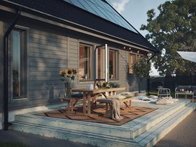 Det finns ett alternativ som vi kallar målningsförberett där du gör en del av arbetet invändigt själv och får ett avdrag på huspriset. När du väljer ett 1,5- eller 2-planshus från SmålandsVillan väljer du också själv när och hur du inreder din övervåning.