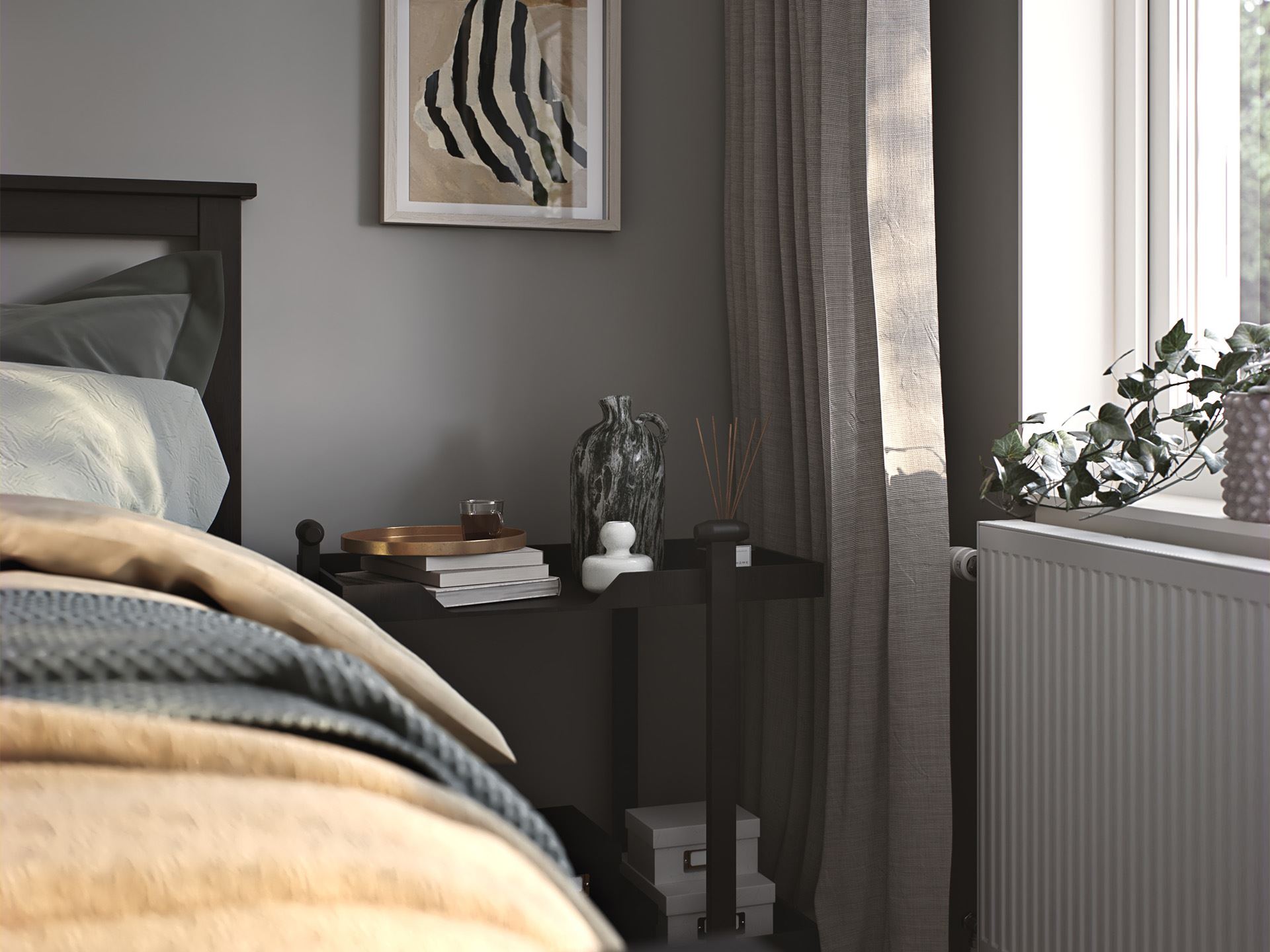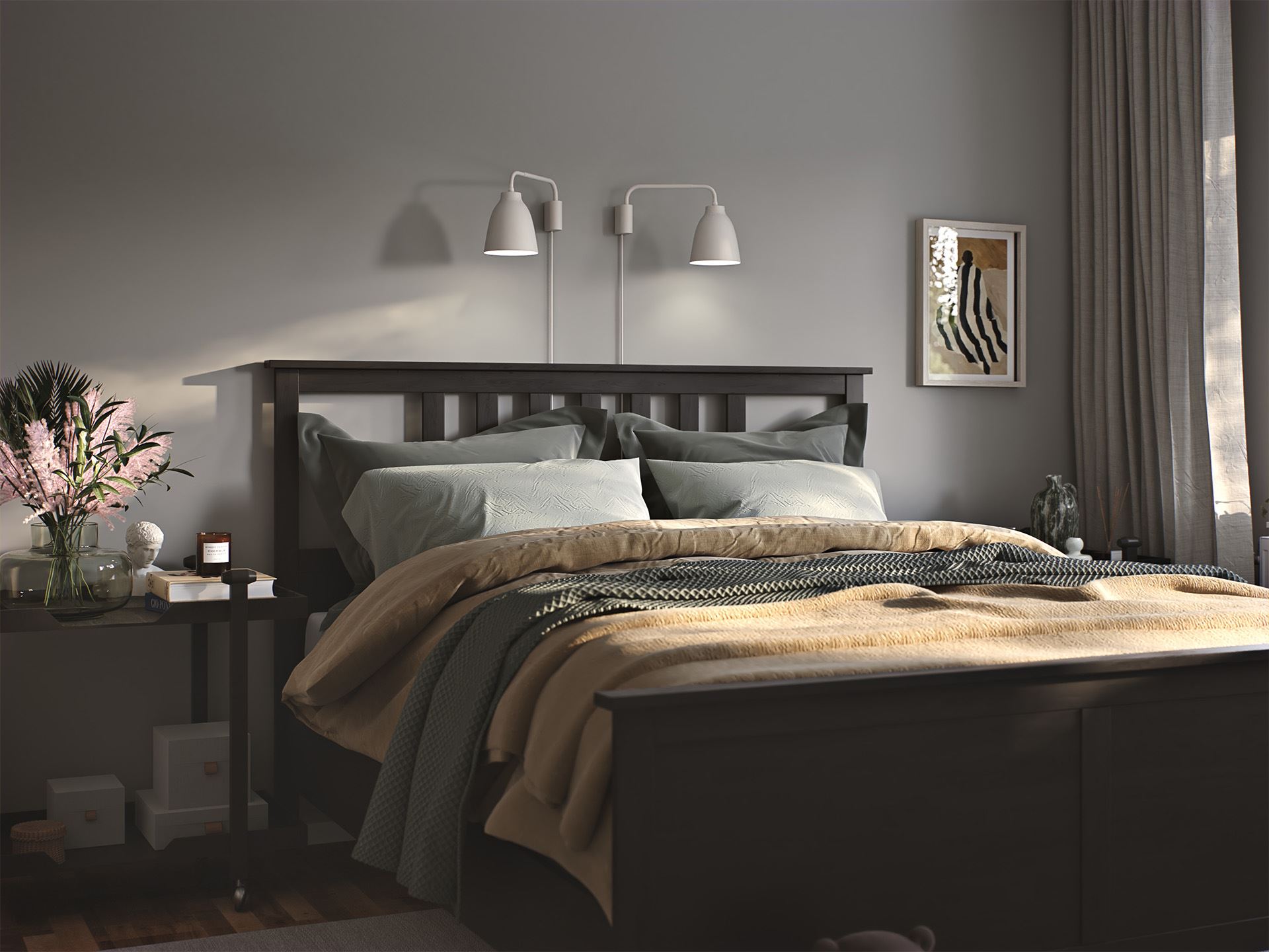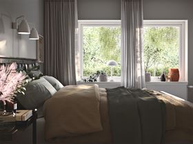 I andra änden av huset väntar sedan ett lugnt och skönt sovrum med gott om garderobsyta. Granne med det ligger badrummet och klädvårdsrummet med praktisk groventré, hurra för det! Kanske noterade du också trappan till övervåningen? Där uppe kan du till exempel få rum med ytterligare tre sovrum, badrum, kontor och ett allrum – ja, Villa Vrigstad kan faktiskt rymma hela sju rum och kök. Men det där får dina drömmar bestämma. Övervåningen inreder du i din egen takt, och i din egen smak.