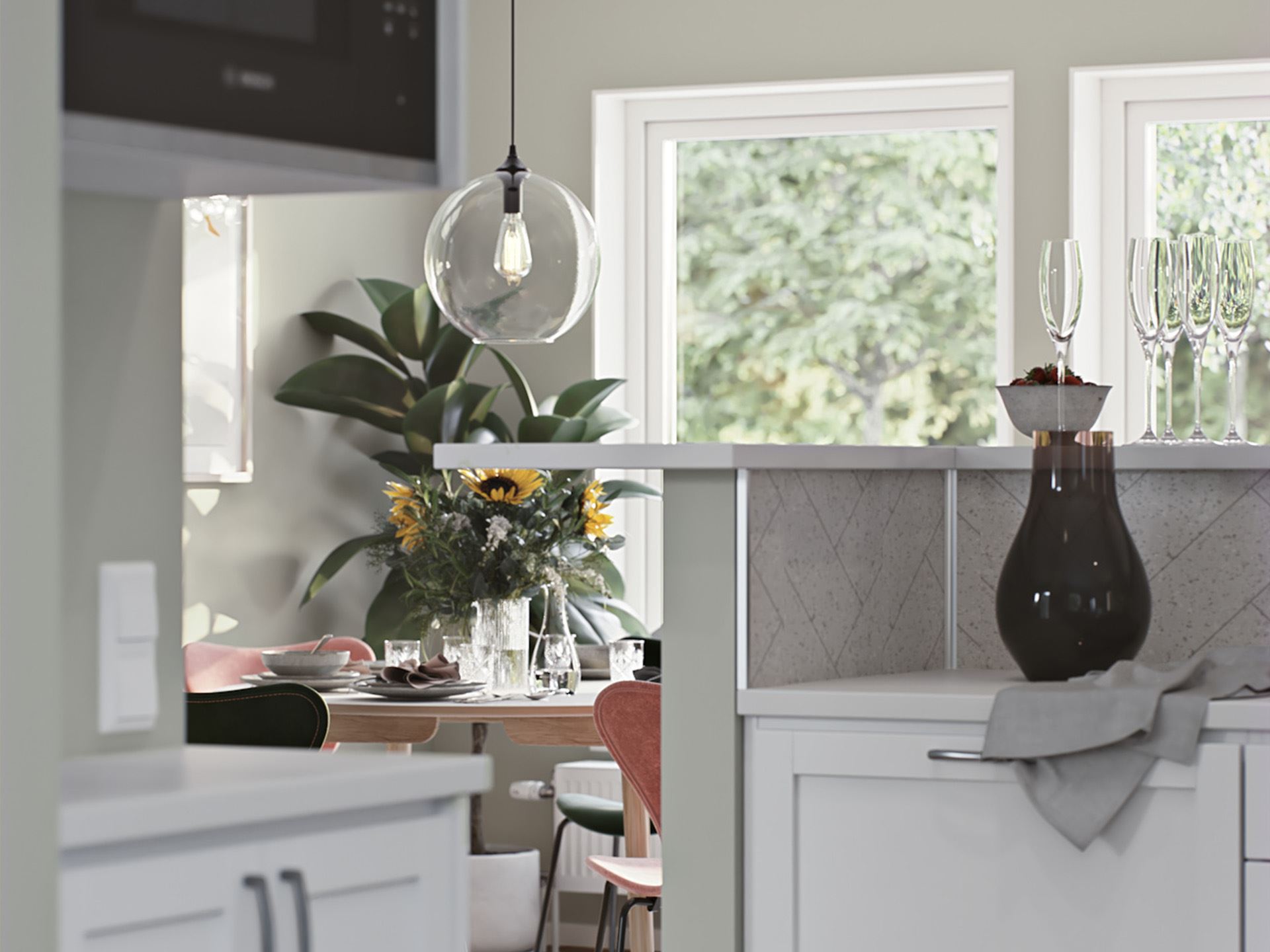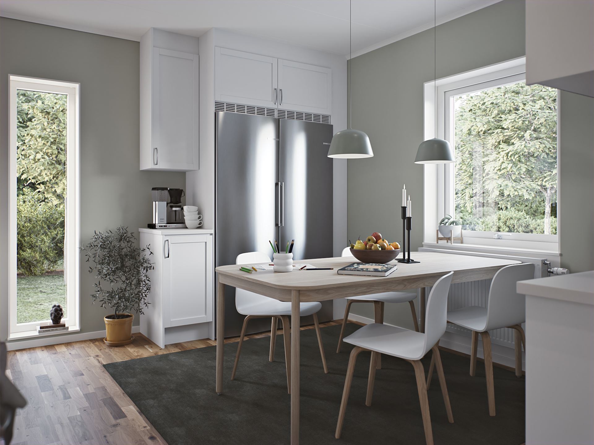 Redan från start är Villa Vrigstad ett hus som är lätt att älska – med fina sociala ytor, ett kök i sin egen rätt och en fönstersättning som låter ljuset flöda in. Slå dig ner i det generösa vardagsrummet, eller spana in hemmets hjärta: köket. Villa Vrigstad bjuder nämligen på ett riktigt kök med rum för både familjefrukostar och pysselstunder – samtidigt som du hela tiden håller kontakten med vardagsrummet via den finfina bardisken.