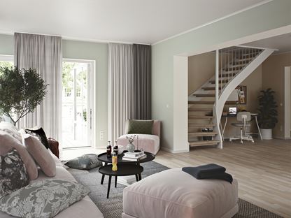 Alla våra 1,5 – och 2-planshus byggs med oinredd övervåning. Denna inreder ni sedan själva i takt med att familjen växer eller behoven ändras. Här kan ni låta fantasin flöda fritt och skapa plats för det just ni drömmer om: hemmakontor, ateljé eller pysselrum, ett stort spabadrum eller kanske den perfekta myshörnan för ungdomarna. I vissa av våra husmodeller, som Villa Huskvarna, kan du även välja att få övervåningen inredd från start. Ett bekvämt alternativ, inte minst för småbarnsföräldrar.