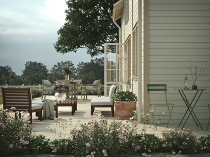 När ni sedan har en plan är det dags att göra den till verklighet, men var börjar man? Ja, varför inte med att göra platsen där ni vill sitta och äta till en härlig sådan. För så snart första rummet är på plats blir det lättare att se hur det hänger ihop med resten – och hur ni vill röra er mellan rummen. Kanske hamnar grillplatsen eller uteköket i närheten av matplatsen? Och där köksträdgården flyttar in kanske du även placerar komposten?