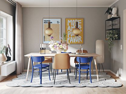 Samtidigt är ju poängen med en lyckad tavelvägg att uttrycket ska hålla ihop. Här kan du antingen hitta din röda tråd i motivens färgkombinationer. Om du vill blanda mer fritt, så kan du välja ramar i samma stil och färg för att hålla ihop det hela.
