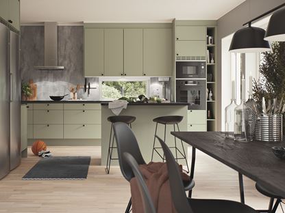 – Förr var det i princip bara tre nyanser av vitt som gällde, men nu vågar allt fler ta ut svängarna. Vi har till exempel en dimgrön nyans som blivit extremt populär. Den passar fint att kombineras med golv i ek och en grå bänkskiva, då får du ett modernt kök med en varm känsla: ett kök som är trevligt att vara i. Men du är inte hopplöst ute om du ändå vill ha ett vitt kök, det går fint att jobba med gröna växter och andra detaljer för att få den där ombonade varma känslan.