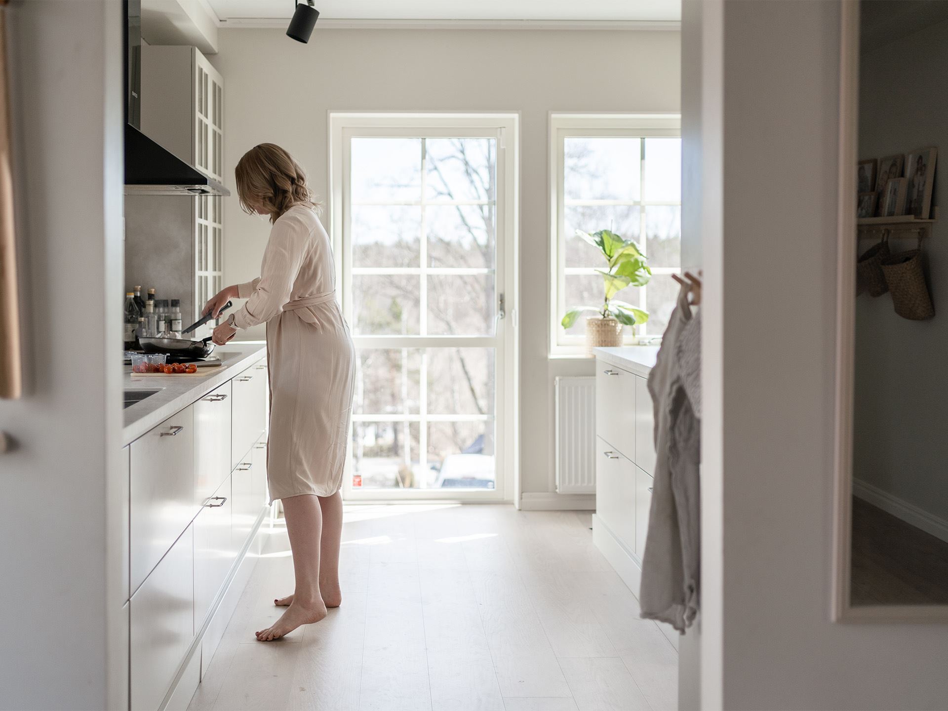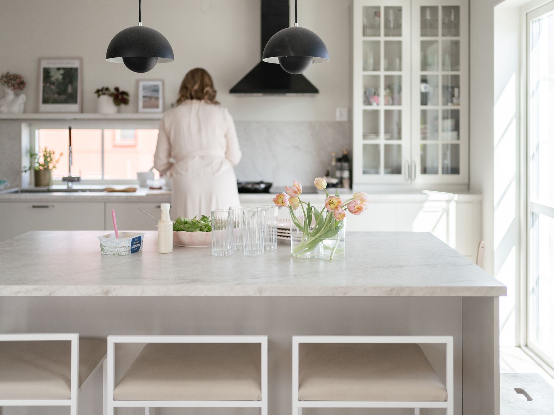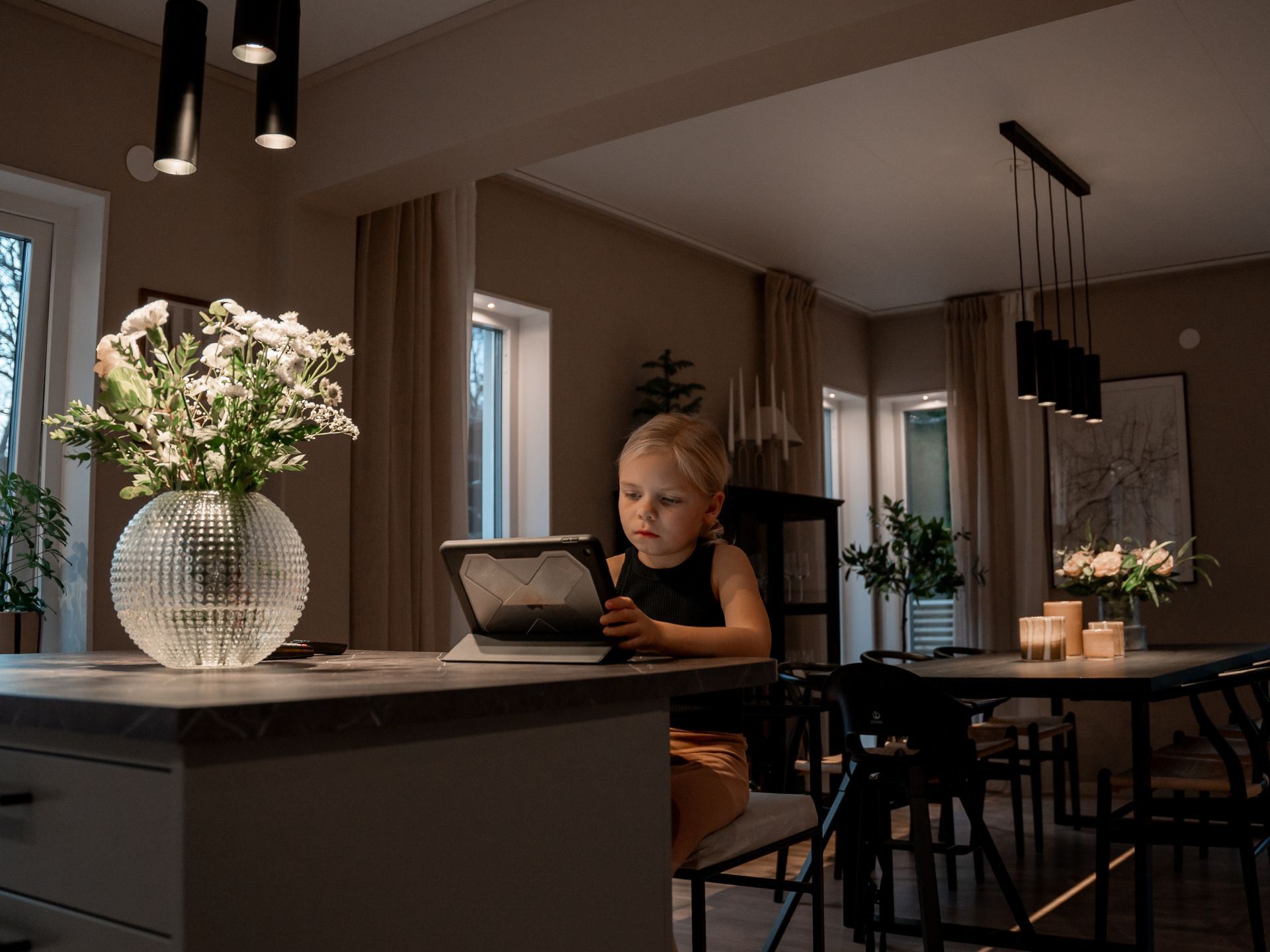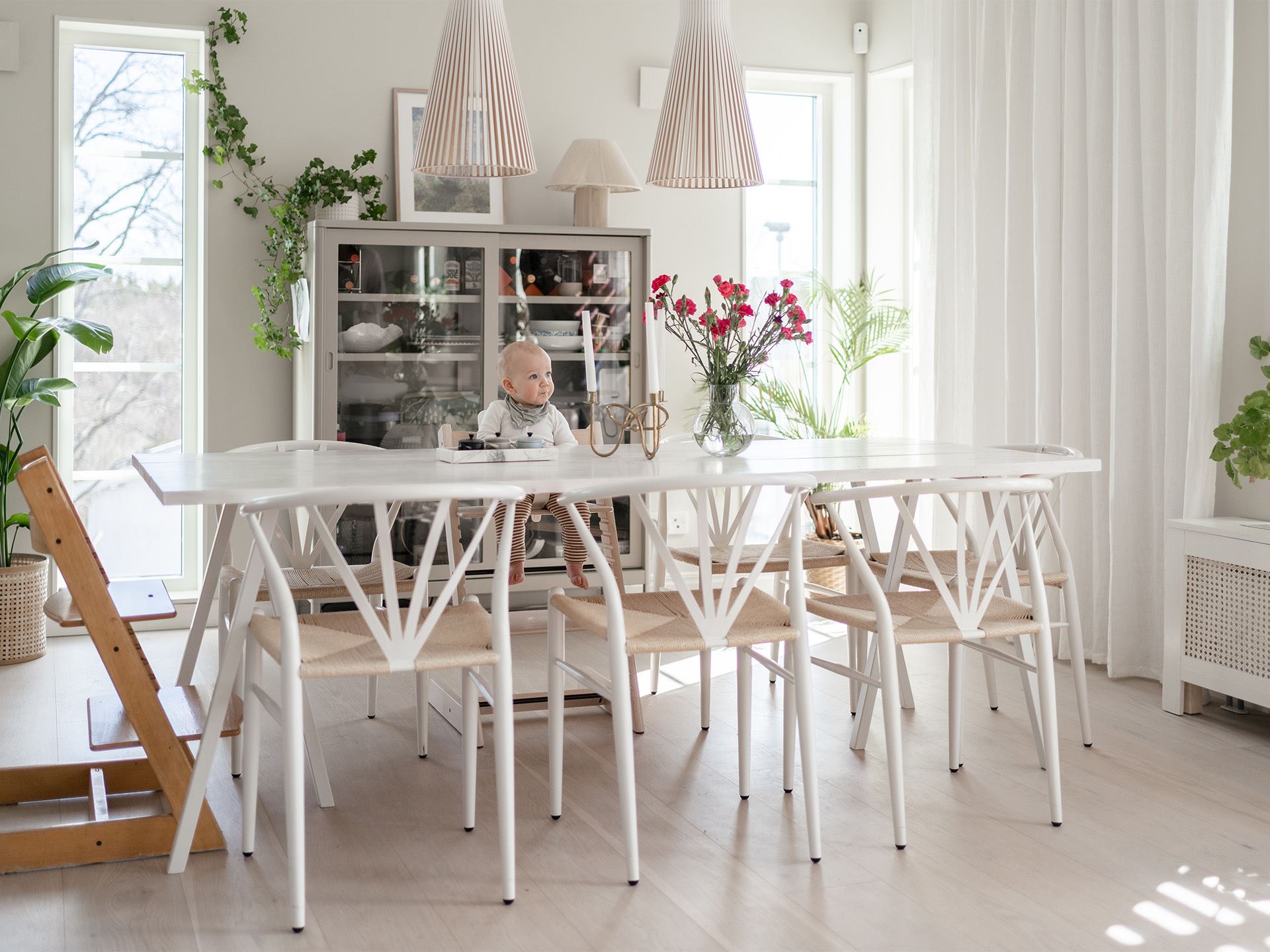 My och Lukas: Vi ville flytta ifrån innerstaden då vi väntade barn nummer två – vi ville komma ut lite mer på landet. Tanken var att köpa ett hus men när vår säljare tog fram en kalkyl för ett Villa Kalmar på tomten i området vi ville flytta till så var det ingen större prisskillnad att bygga nytt kontra att köpa ett begagnat hus.