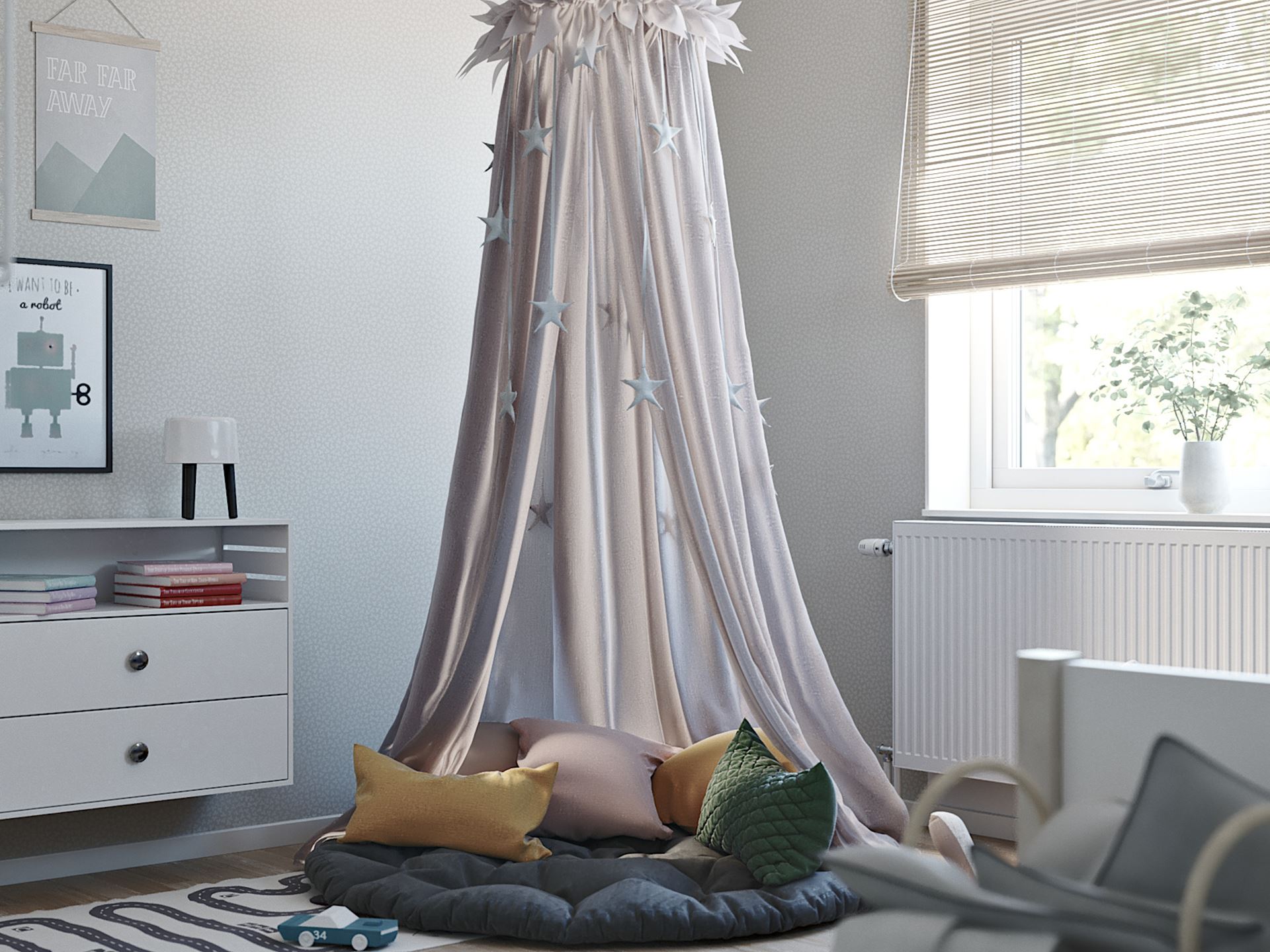 Omvandla ditt barns rum till en inspirerande oas för kreativitet och lek. Låt rummet växa med ditt barn genom justerbara möbler och personliga detaljer som speglar deras intressen.