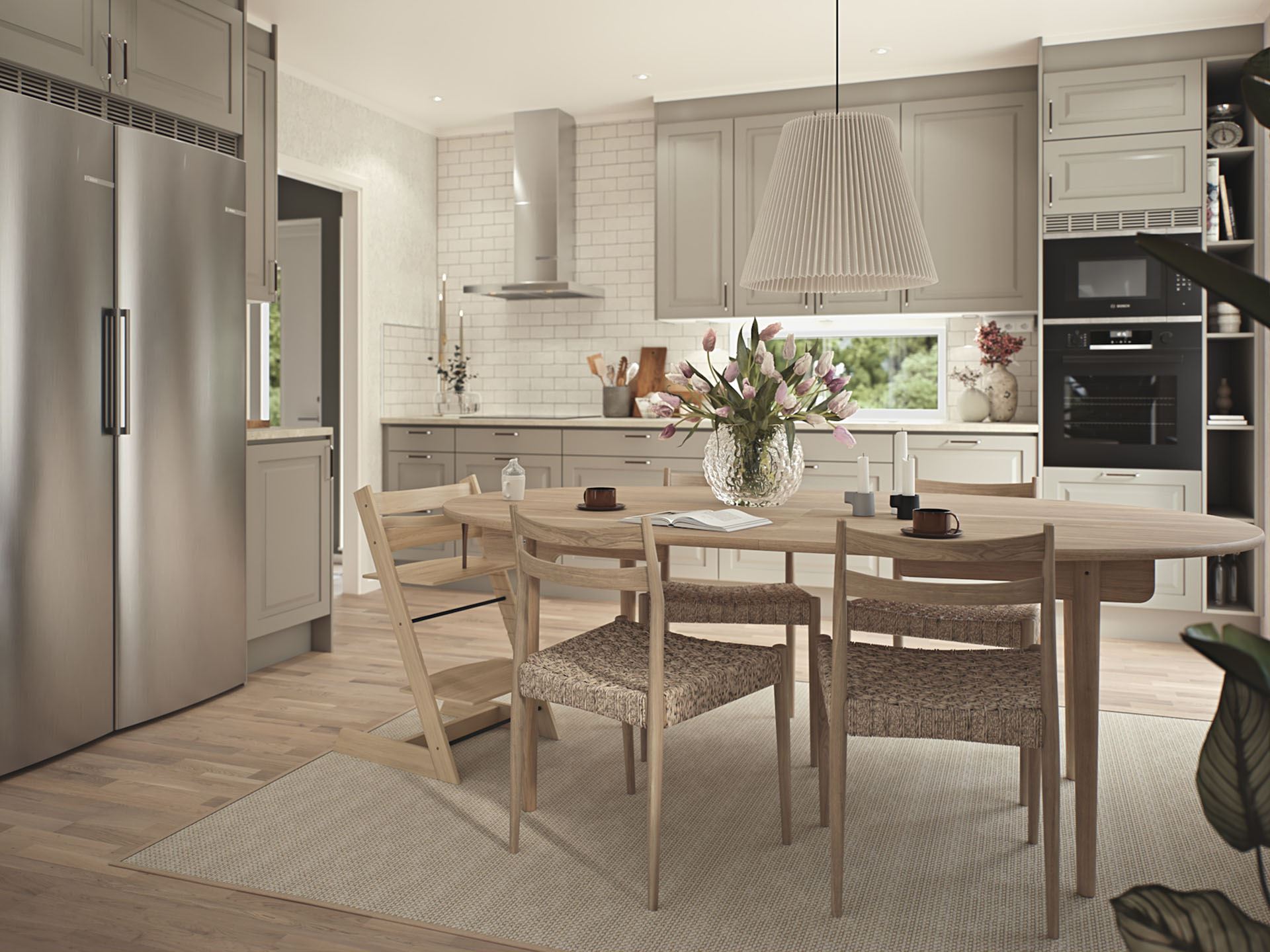 Genom att inreda med neutrala toner som krämfärgat och ljusbeige ger du utrymme åt kökets design och funktion att skina. Koppla samman dessa färger med trädetaljer för att ge en varm och organisk känsla.