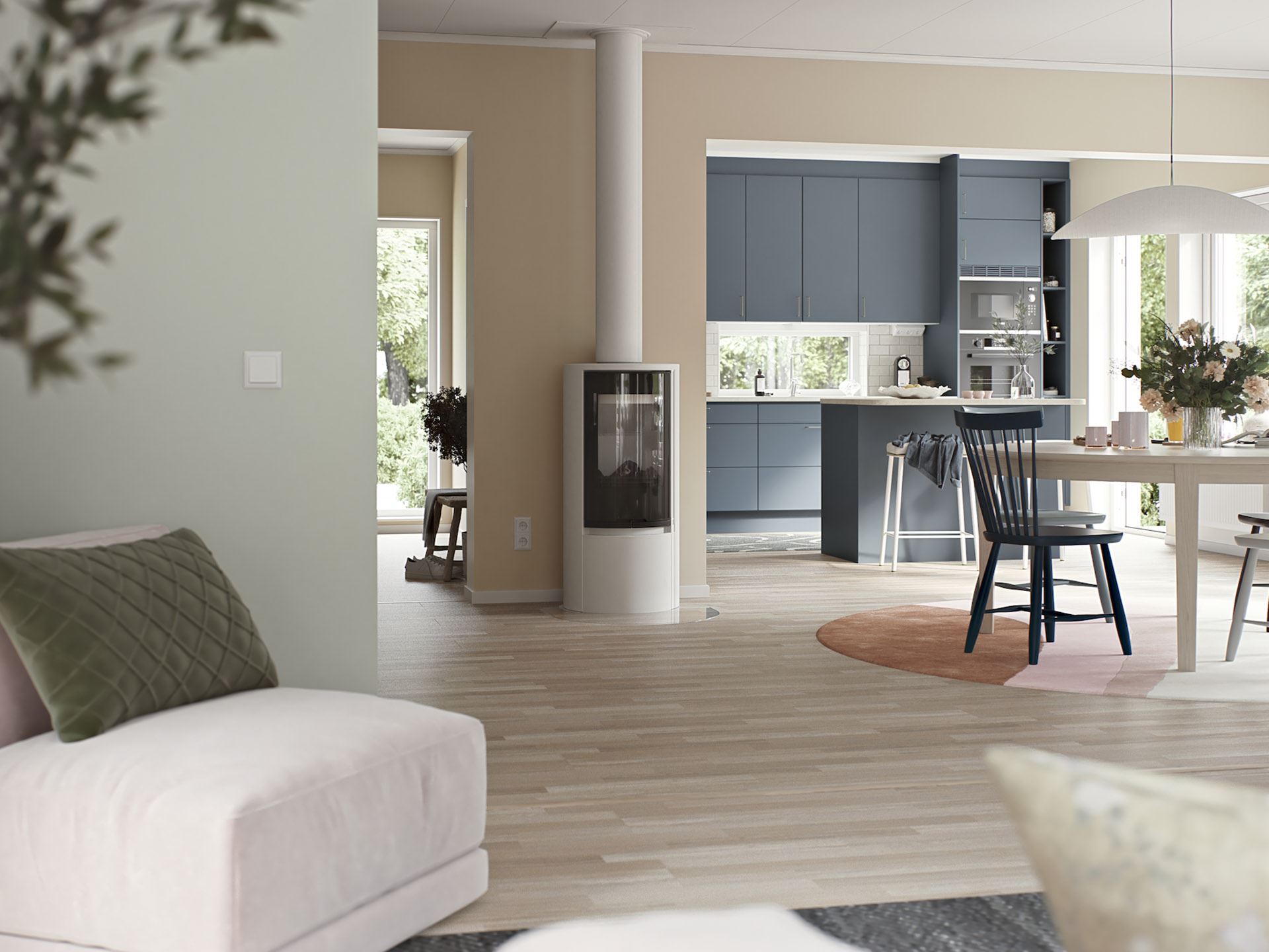 Villa Adelöv har en smart koppling mellan köket och vardagsrummet för en sömlös och sammanhängande känsla i ditt hem.