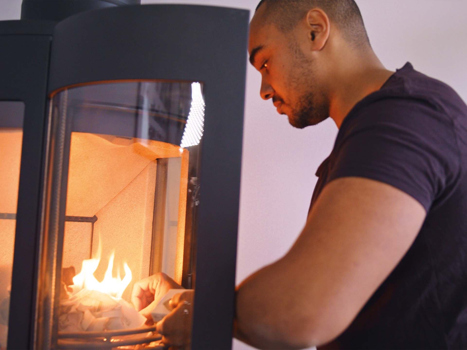 – Vi valde till braskamin, det kände vi var en viktig punkt i huset. Och mysigt på vintern och hösten att kunna elda, berättar Fredrik.