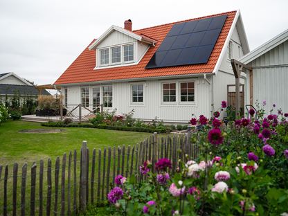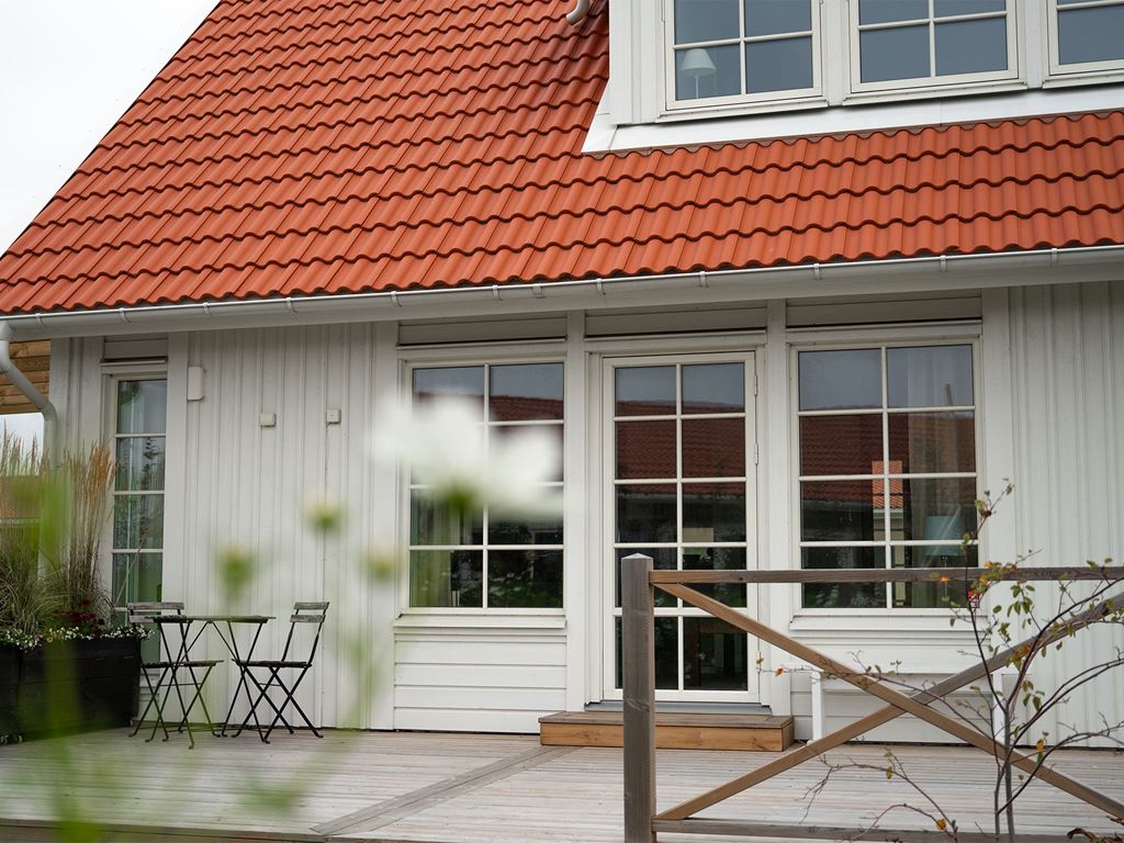 – Vi ville ha ett 1,5-planshus, jag tycker de är så klassiska. Så vi tittade på flera olika husmodeller, men vi gillade verkligen planlösningen i Villa Kalmar. Jag gillar också att framsidan inte har så mycket fönster, utan att de stora fönsterpartierna finns på baksidan ut mot trädgården. Det blir lite mer privat. Dessutom passade huset bra på tomten vi valt, förklarar Elisabet.