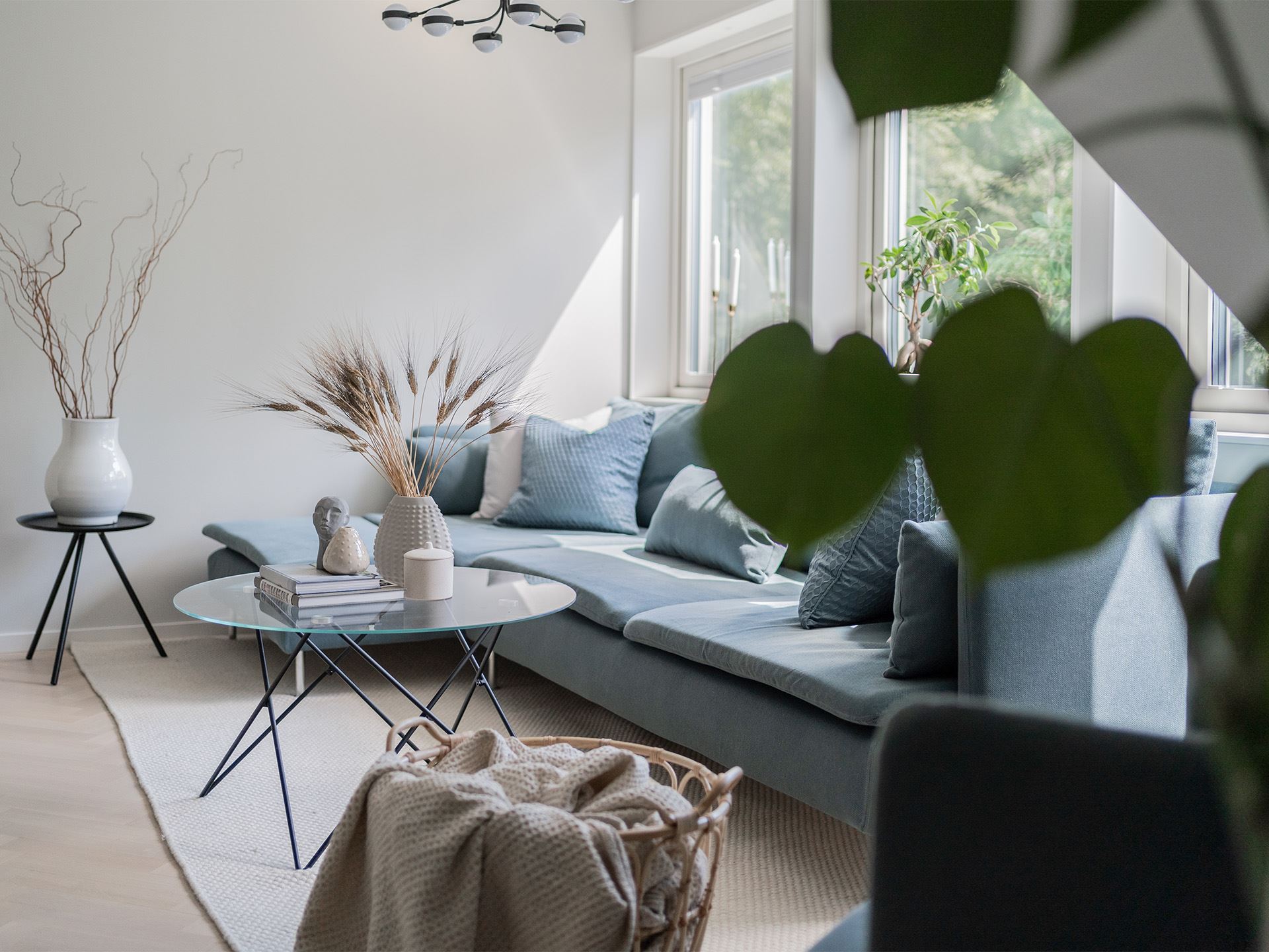 – Vi har uppfarten från sidan så det blev väldigt välkomnande med entrén på gavelsidan. Sen älskar jag ljuset i vårt hem. Det är söderläge på den sidan vi har fönstren och fördelaktigt då vi har fönsterna mot skogen och inte så mycket fönster mot grannarna så det blir lite insynsskyddat, berättar Tarik.