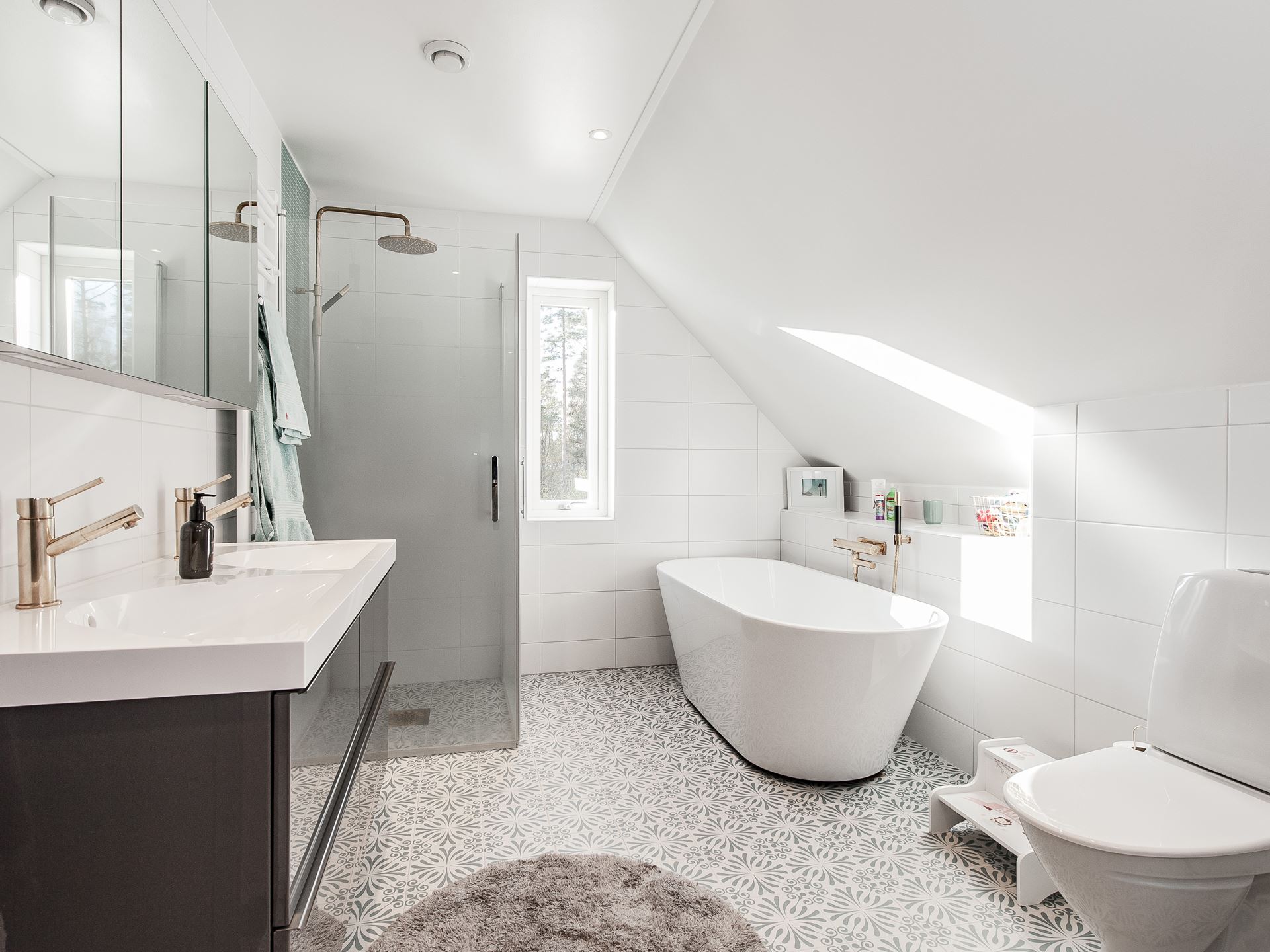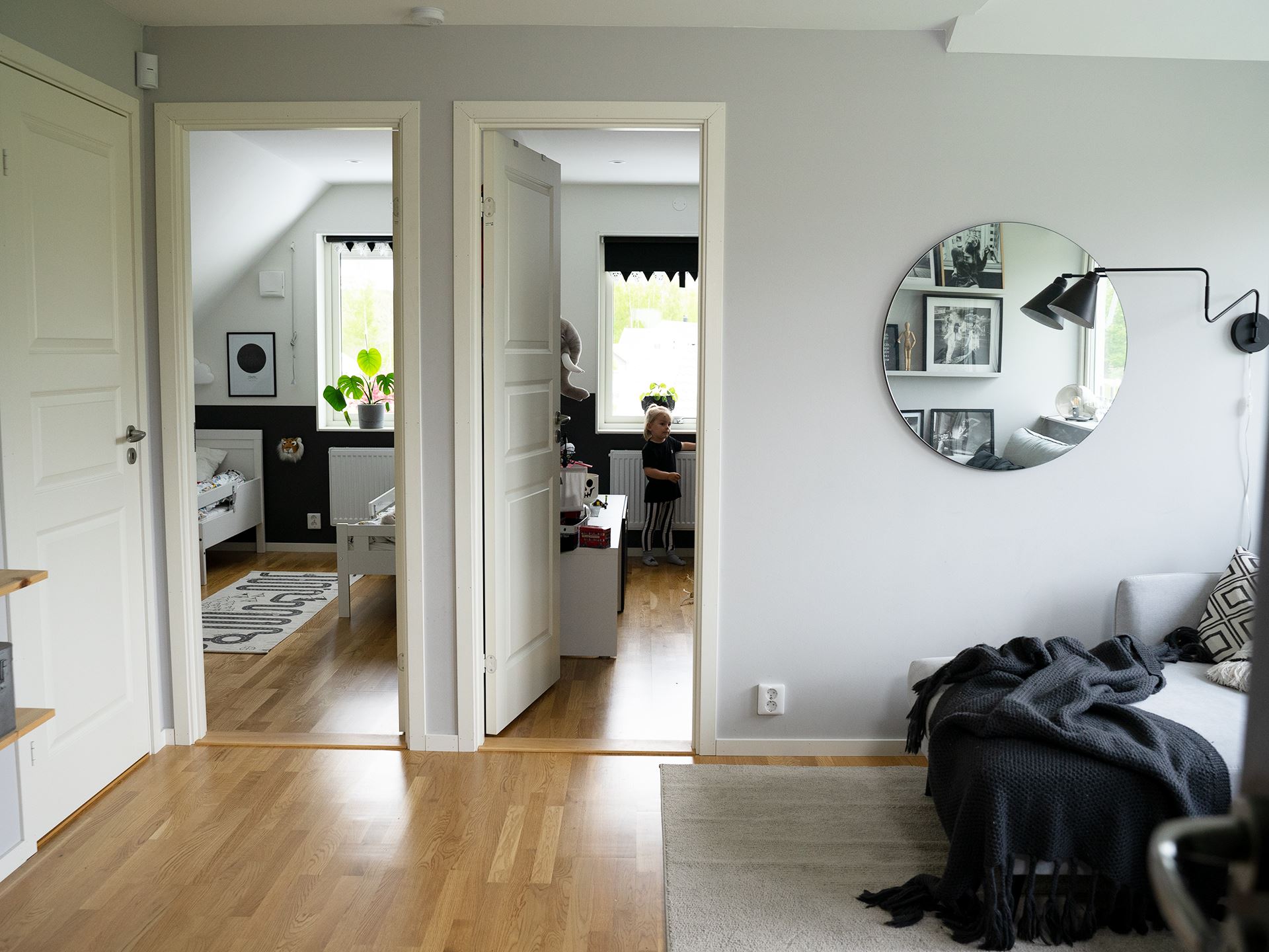 När du flyttar in i en Smålandsvilla är övervåningen förberedd och redo för att inredas. Huset har som standard ett isolerat mellanbjälklag mellan botten- och ovanvåningen.