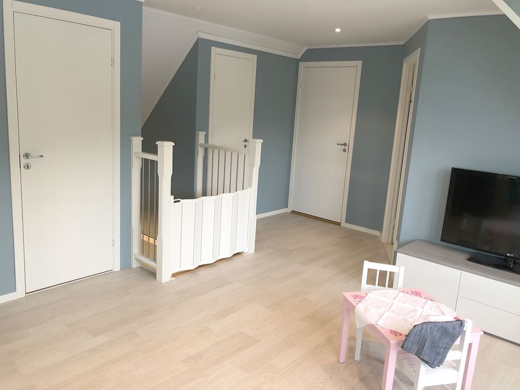 Vi har byggt tre sovrum, ett stort badrum på ca 10 kvadratmeter, ett allrum på ca 20 kvadratmeter samt två klädkammare. Vi har väldigt stort behov av förvaring så vi gjorde en speciallösning i kattvindarna genom att isolera och sätta skjutdörrar i alla sovrum. Detta har gjort att vi kan utnyttja huset till max då det är en 1,5-planshus. Förvaring kan man aldrig få förmycket av, speciellt inte när man har två barn i huset.
