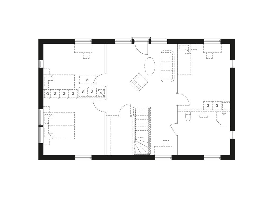 Huset levereras med oinredd övervåning. Detta är ett förslag på hur du kan göra.