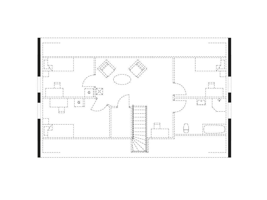 Huset levereras med oinredd övervåning. Detta är ett förslag på hur du kan göra.