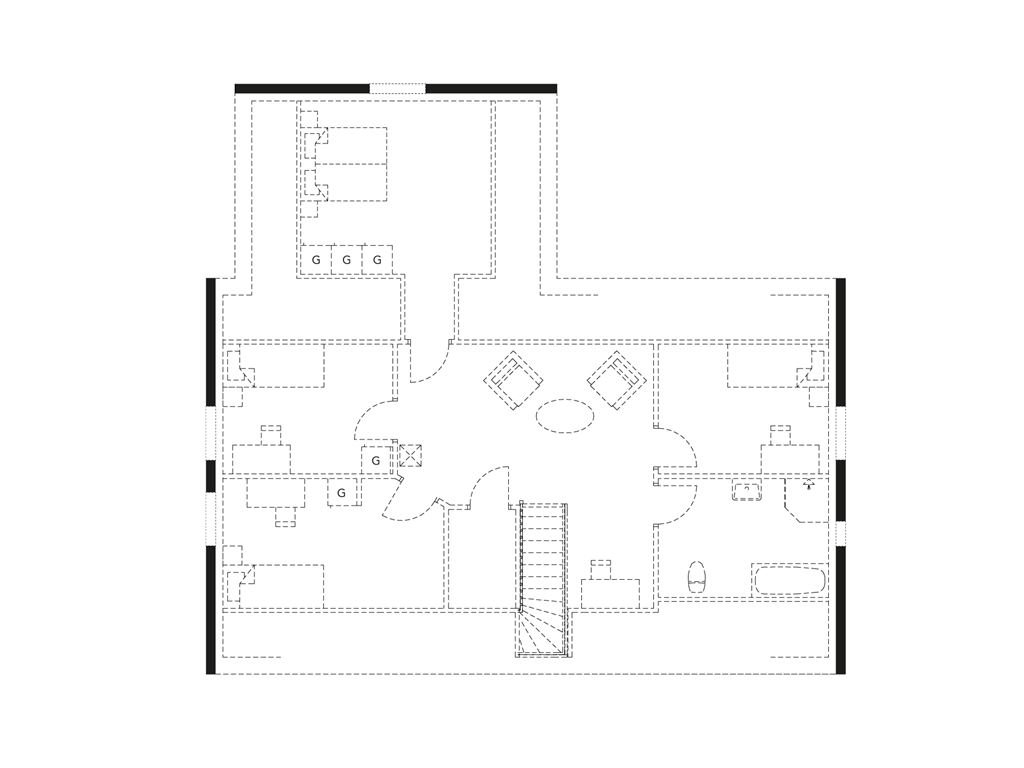 Huset levereras med oinredd övervåning. Detta är ett förslag på hur du kan göra.