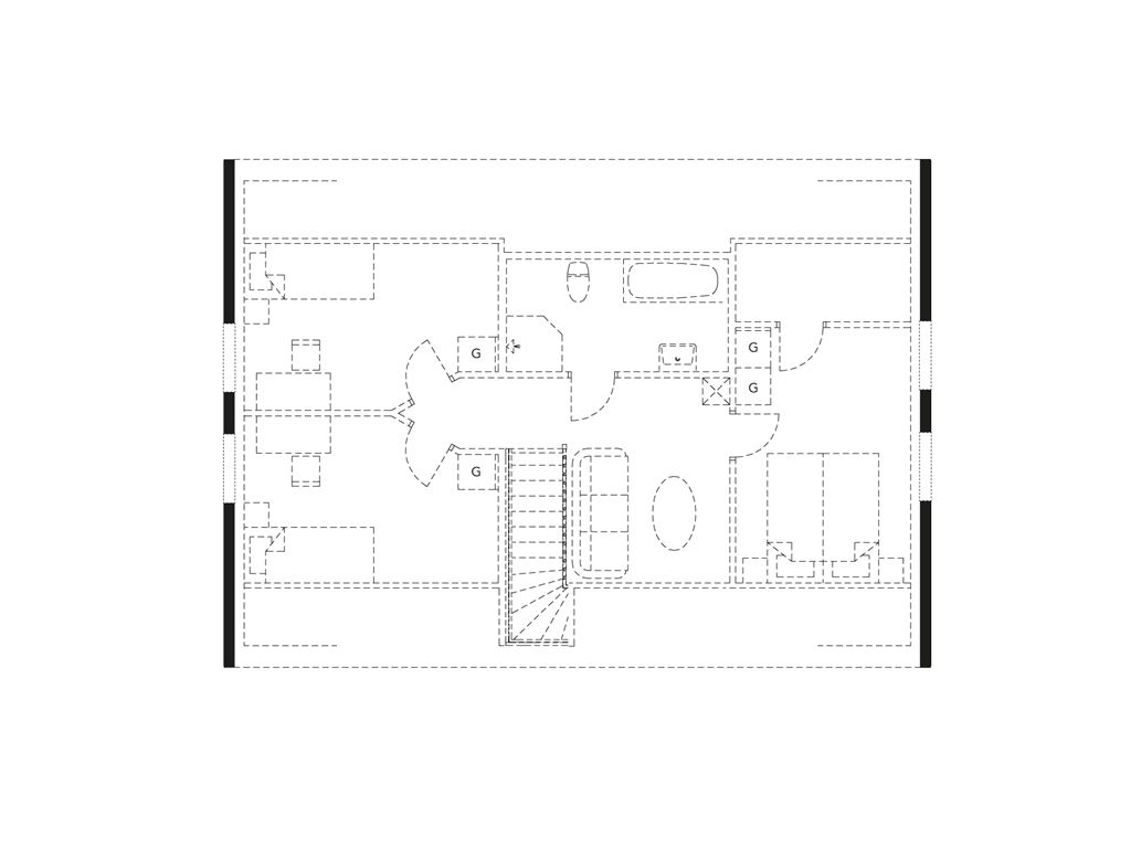 Huset levereras med oinredd övervåning. Detta är ett förslag på hur du kan göra.