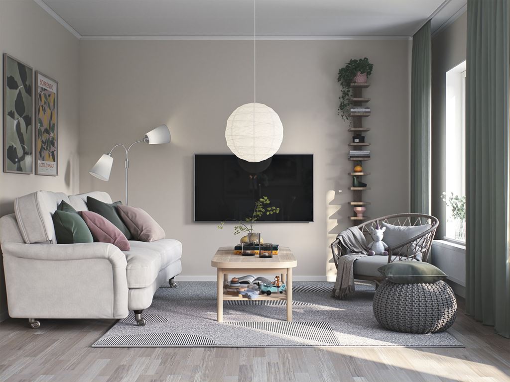 Du måste inte måla vitt, men det är oftast bättre att välja ljusa, harmoniska färger, inte minst i rum som man vill ska kännas större. Har du till exempel en liten prinsessa eller dinosauriefantast som ska få eget rum? Då kan det vara smart att välja mer dämpade nyanser och låta prinsess- eller dinosauriefaktorn gå igen i detaljerna istället. Satsa också på bra belysning i alla rum, och sprid ut denna i rummet så att det finns flera ljuspunkter – det gör underverk för känslan i rummet. Fem ljuspunkter i ett rum är inte alls någon överdrift.