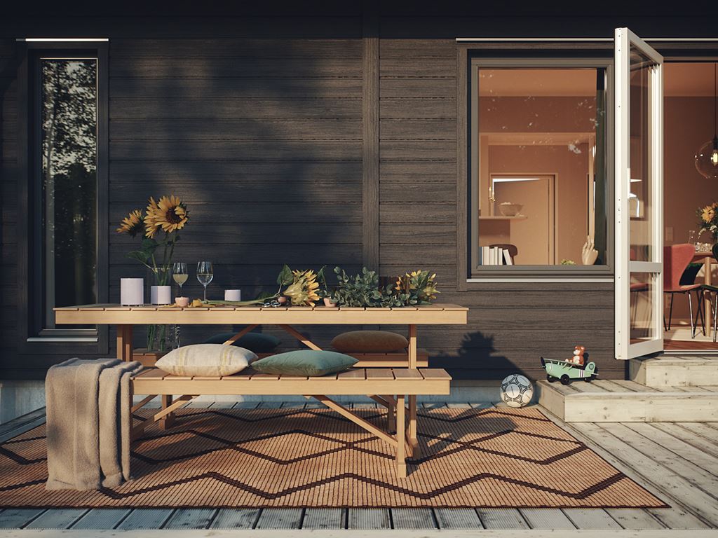 När du bygger hus med SmålandsVillan gör du ett långsiktigt val som gynnar nästa generation. Till största möjliga mån ser vi till att ligga långt fram i frågor om miljö och hållbarhet i alla led. Solceller på taket är bara ett av många exempel på hur du kan värna om världen lite extra, men också höja värdet på ditt hus vid en eventuell vidareförsäljning. Som ett av våra gröna tillval kan du välja att utrusta huset med solpaneler – installationen pågår under byggtiden och ligger färdigt på taket så fort det är inflyttningsklart.