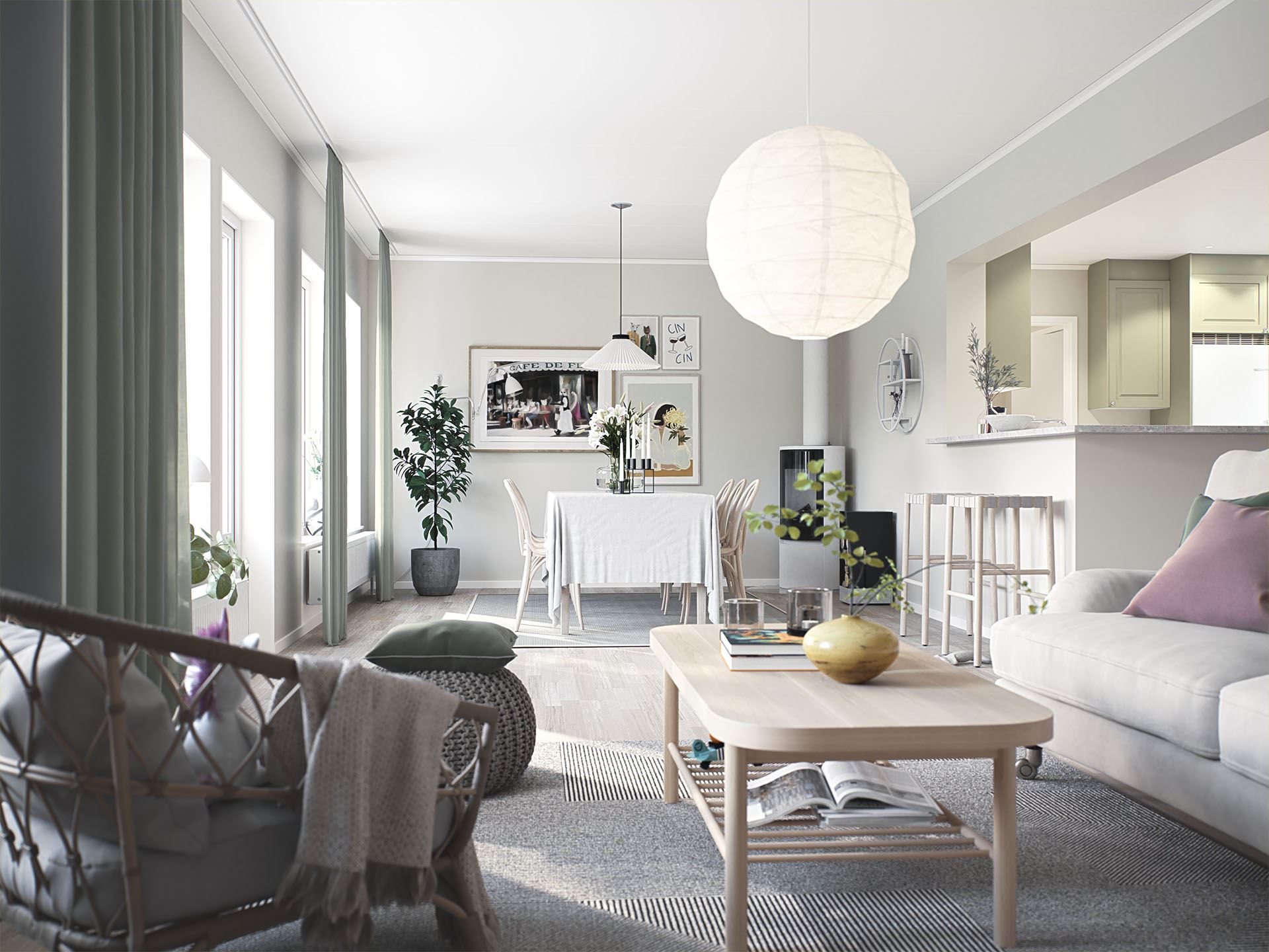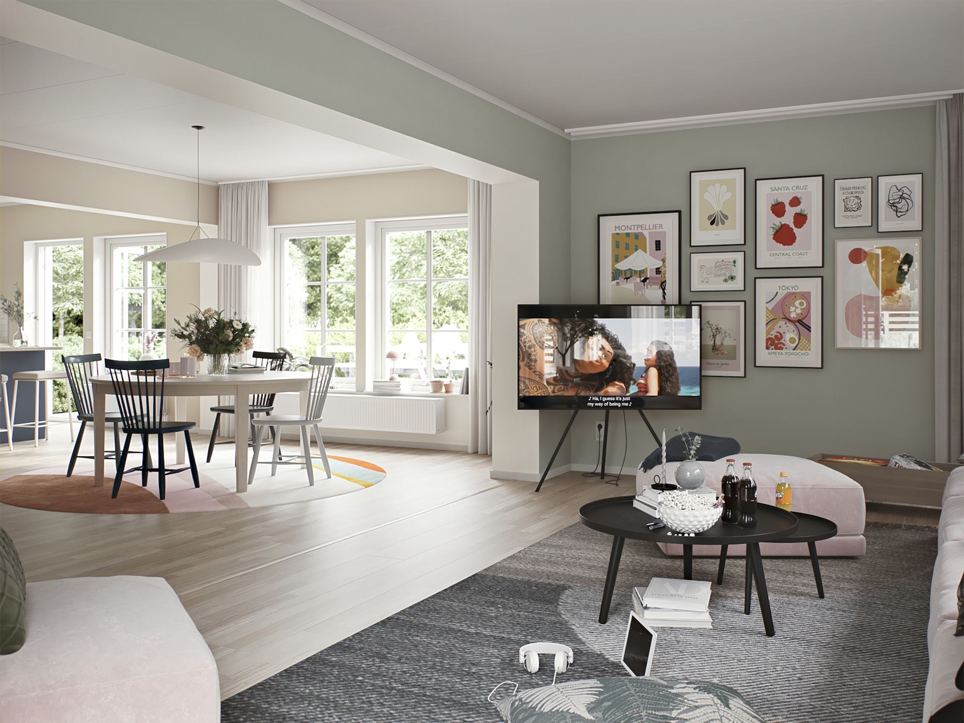 Vi gillar vardagsrum med öppna ytor där hela familjen kan inspireras i olika aktiviteter.