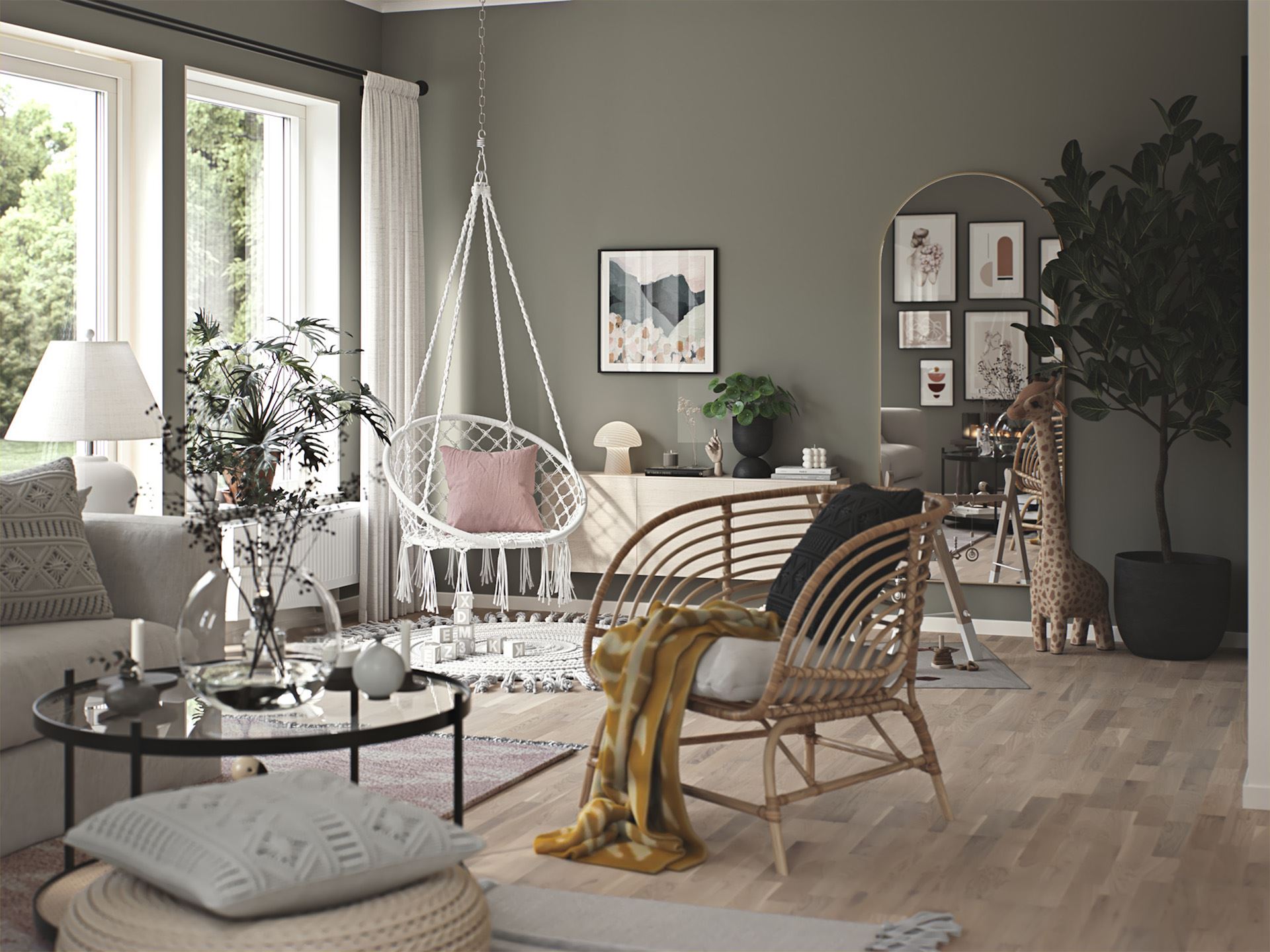 I år hämtar vi inspiration till vardagsrum från flera olika stilriktningar. Dels ser vi allt mer färg som smyger sig in och livar upp – både i form av konst, accessoarer och mindre möbler. Men även Japandi-trenden kommer starkt, ett möte mellan skandinavisk minimalism och asiatisk harmoni. Här är färgskalan lugn och balanserad med mycket trä. Rena linjer och låga möbler är också några av stilens kännetecken.