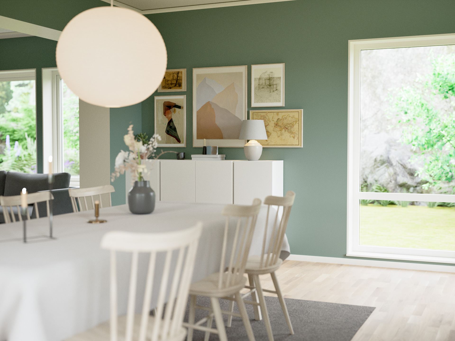 Villa Äng är ett 1-planshus skapat för ett liv där allt får plats utan att ta över. Här möts du av en generös social yta för kök, vardagsrum och matplats – en öppen helhet som gör det lätt att umgås och vara tillsammans. Samtidigt finns en avskild del med två sovrum som standard, för lugnare stunder.