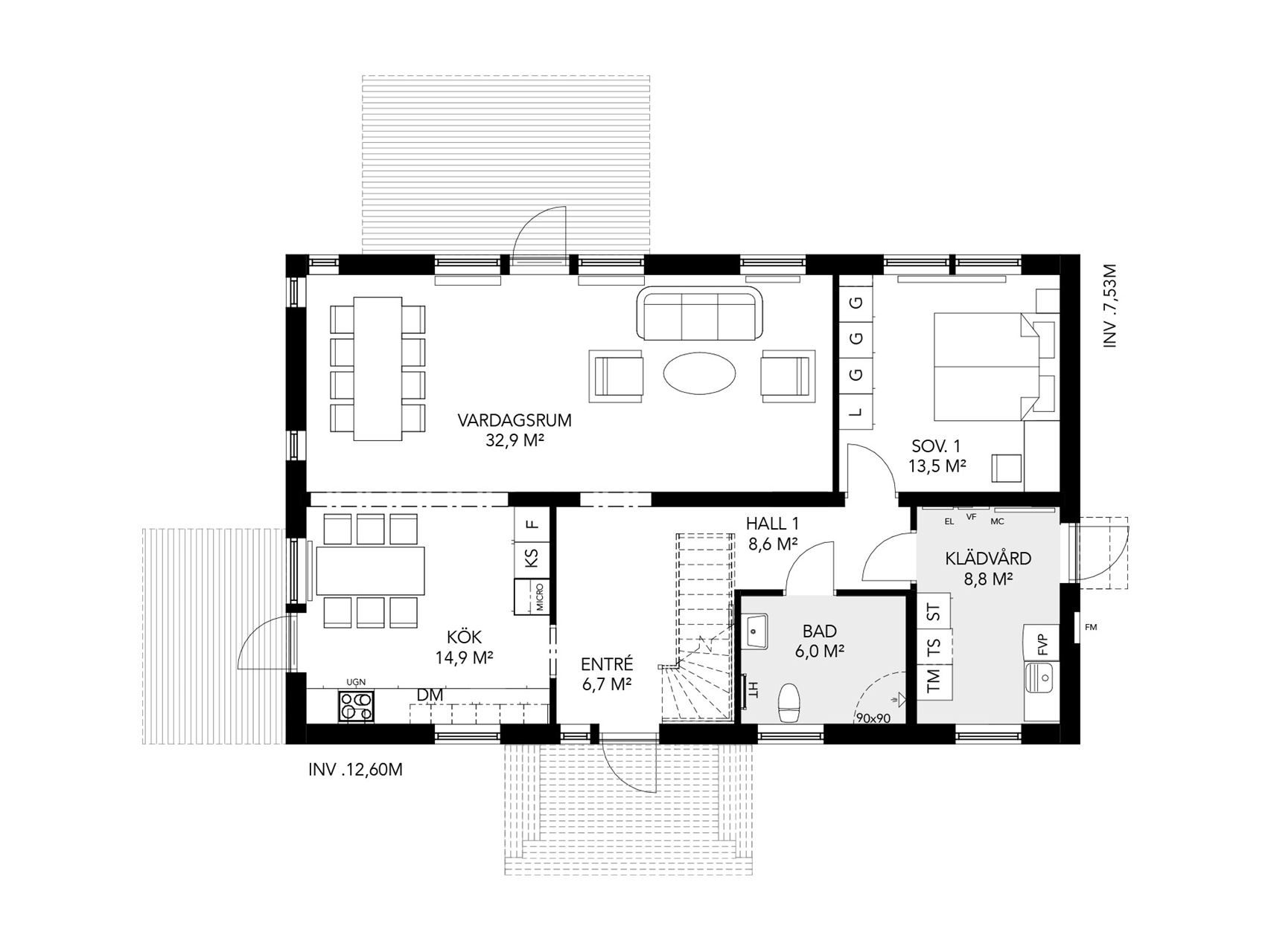 • Boarea: 95 m2  Med inredd övervåning: 162m2