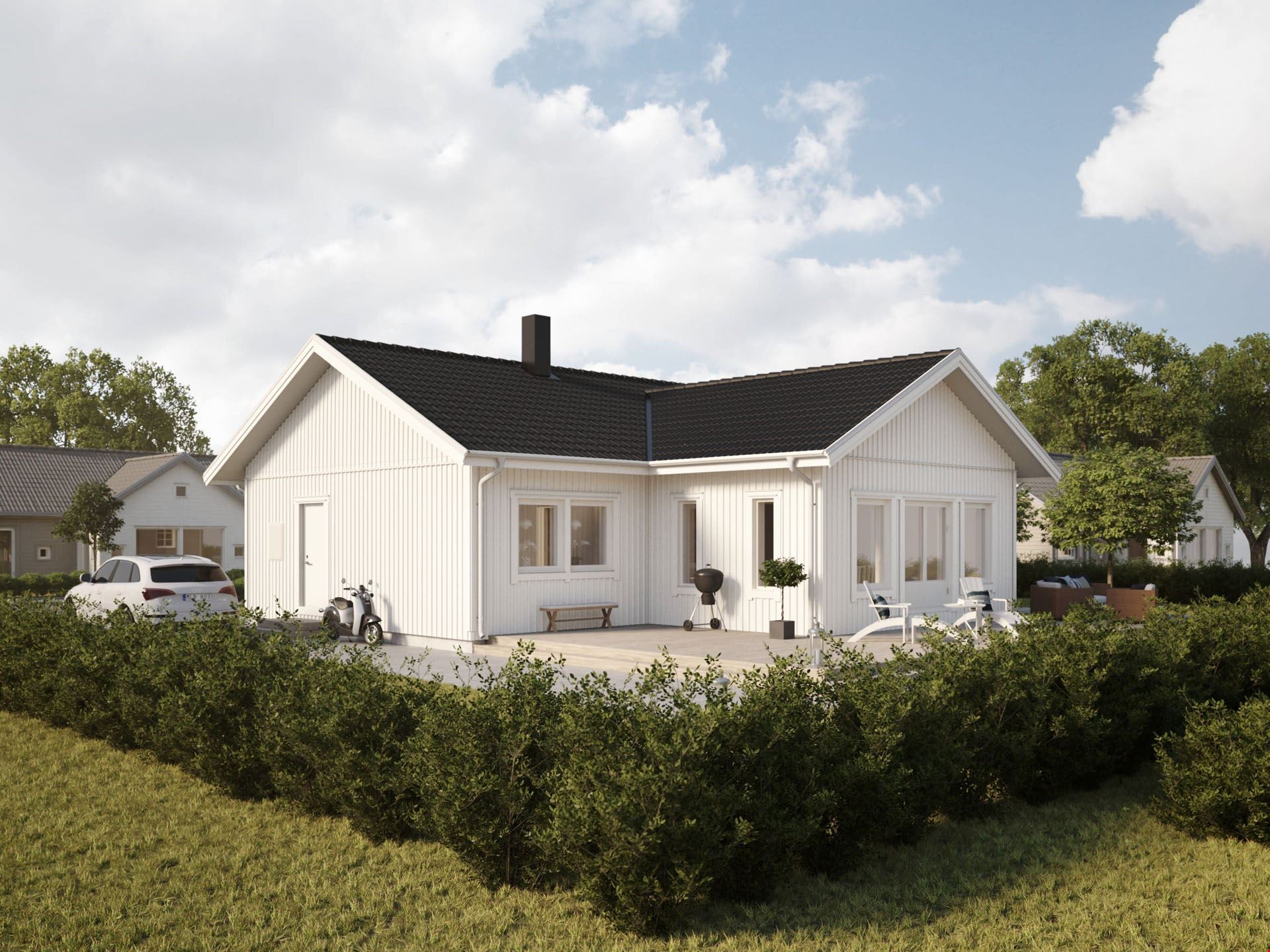 Säg hej till ett ljust och trivsamt enplanshus med fina sociala ytor och gott om plats för privatlivet på 146 härliga kvadratmetrar. Här utfört i en klassisk skrud med ståendepanel och svart tak. Inuti finner vi en jättefin planlösning, genomgående hög standard och stilren inredning med ljusa ekparkettgolv samt vitmålade väggar.