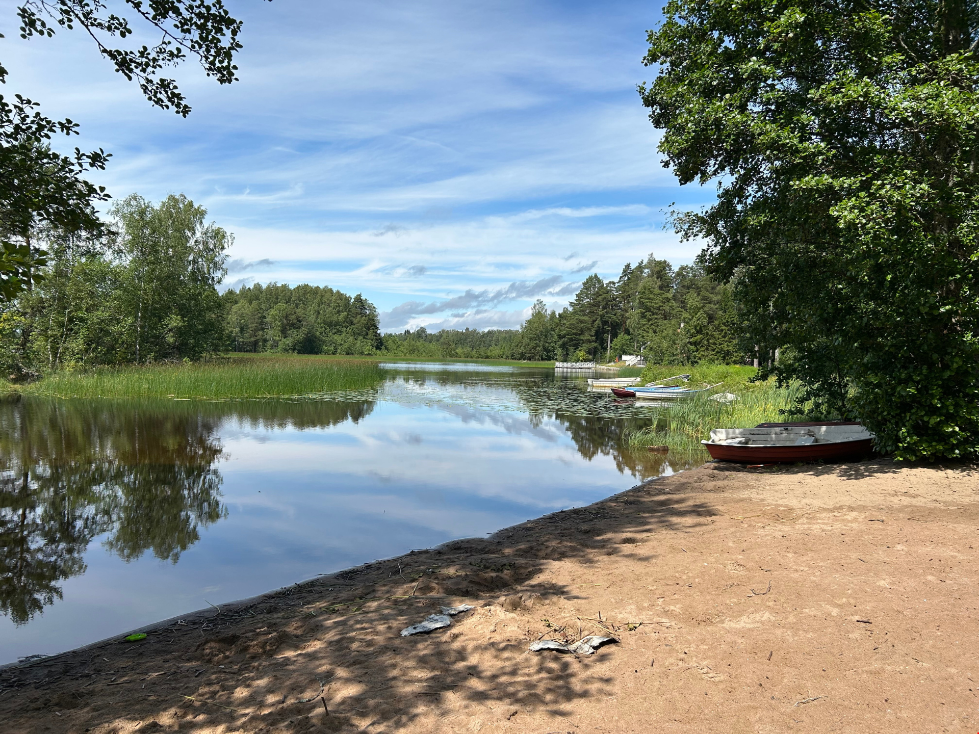 På bara tre minuters bilresa når du Långforsbadet – en omtyckt badplats med bryggor, hopptorn och ett charmigt kallbadhus. Här kan du hyra roddbåt, kanot eller paddleboard för att njuta av sommaren fullt ut. Vill du hellre ta det lugnt finns både volleybollplan, boulebana och mål för handboll precis intill. När hungern smyger sig på, kan du slå dig ner på Måns Ols restaurang, som serverar allt från lunch och fika till middagar och festmåltider.