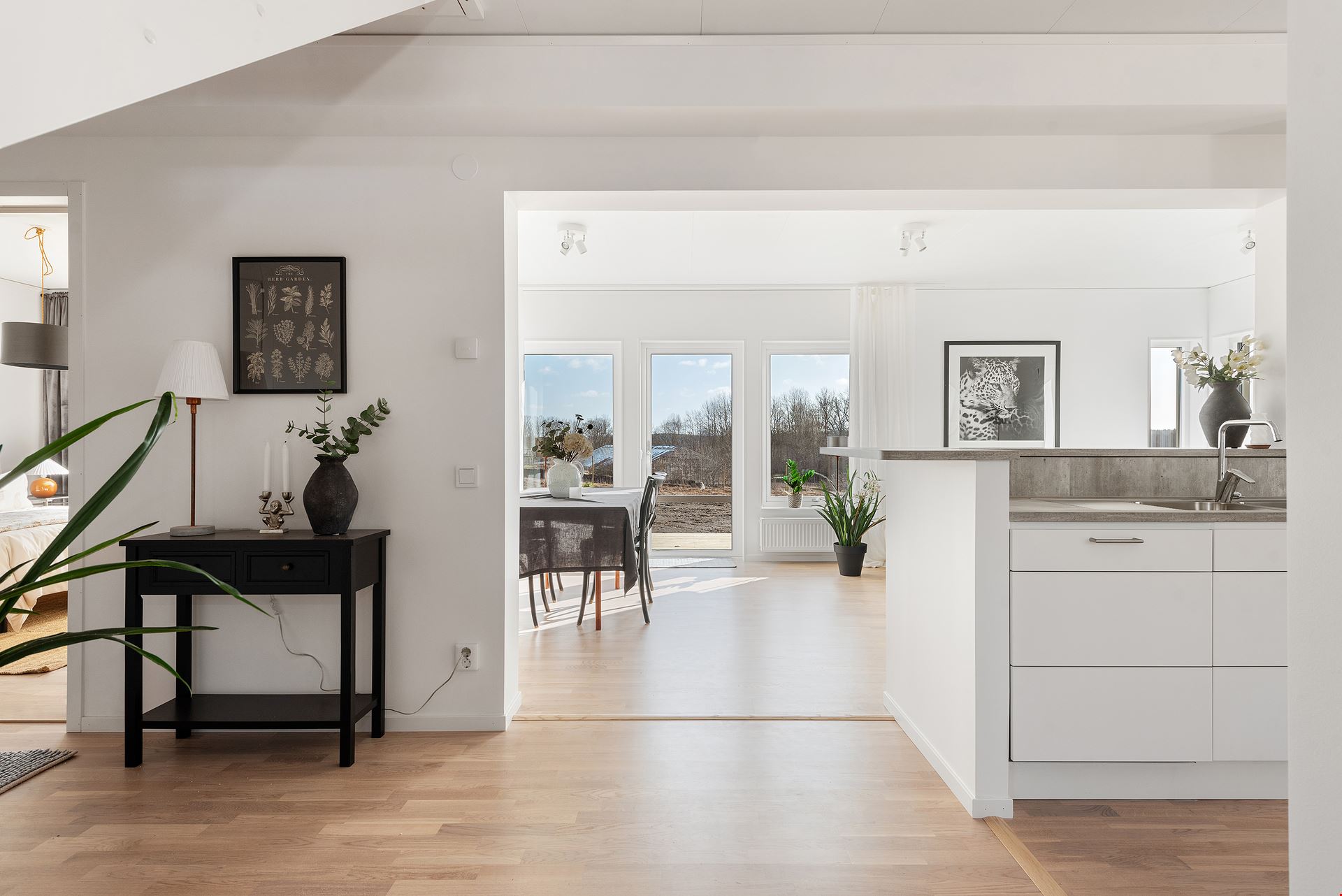 Villa Markaryd är ett litet hus i stort format. Här har vi valt att uppföra huset med liggande panel, rött tegeltak och ett litet entrétak. Invändigt har huset en genomgående hög standard samt bra planlösning och är inrett med ek-parkettgolv samt vitmålade väggar.