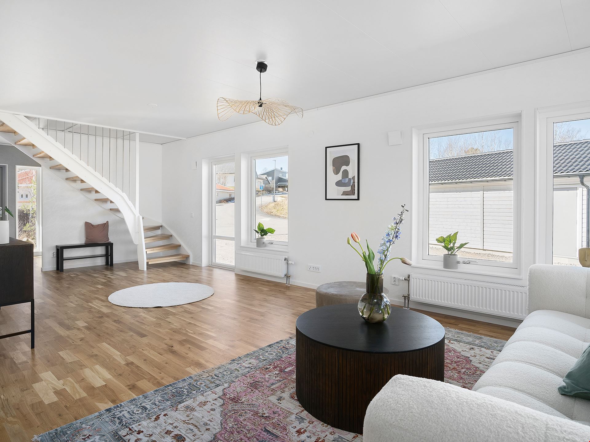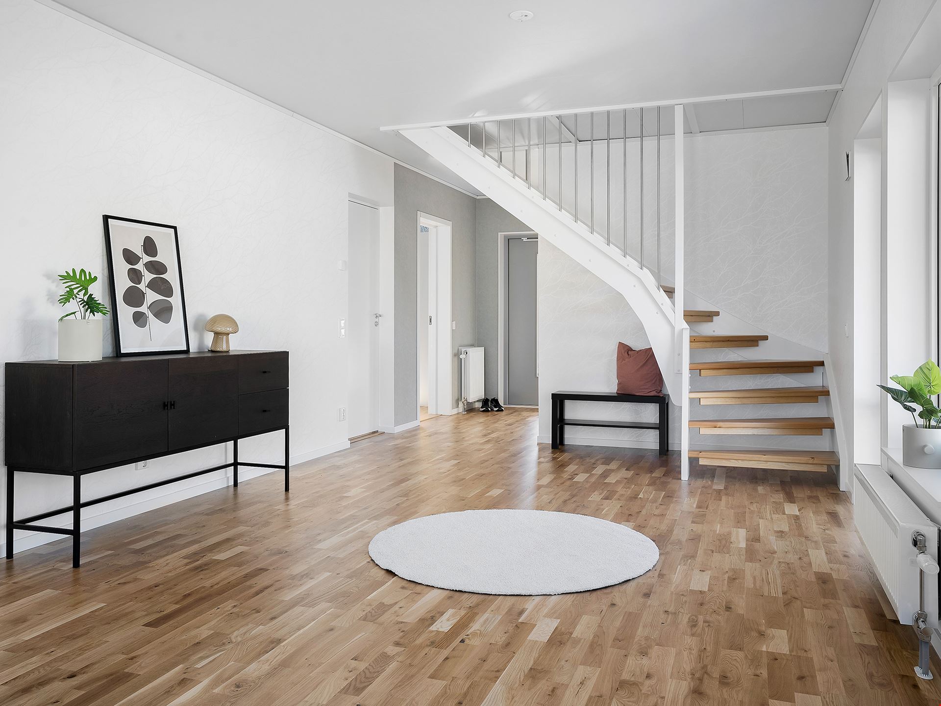 Välkommen till denna villa om 88 välplanerade kvadratmeter med 2 rum och kök i Ekenäs. Det här huset har en härlig genomsikt från entrén vid gaveln mot trädgården på baksidan. Direkt vid hallen tar du dig både in till klädkammaren med plats för skrivbord och det stora sovrummet som bjuder på gott om förvaring och egen walk in closet. Tar du ytterligare ett kliv in så finner du husets badrum. Från hallen tar du dig sedan vidare in till det stora vardagsrummet som är förberett med en trappa upp till det övre våningsplanet. I vardagsrummet finns det plats för såväl soffgrupp som matplats.