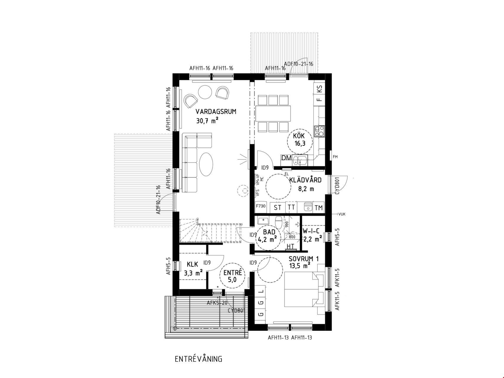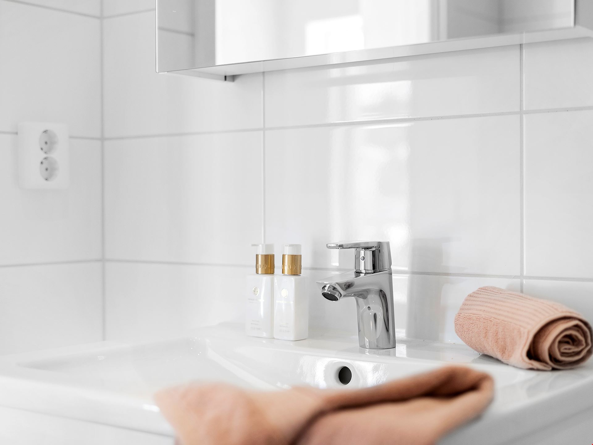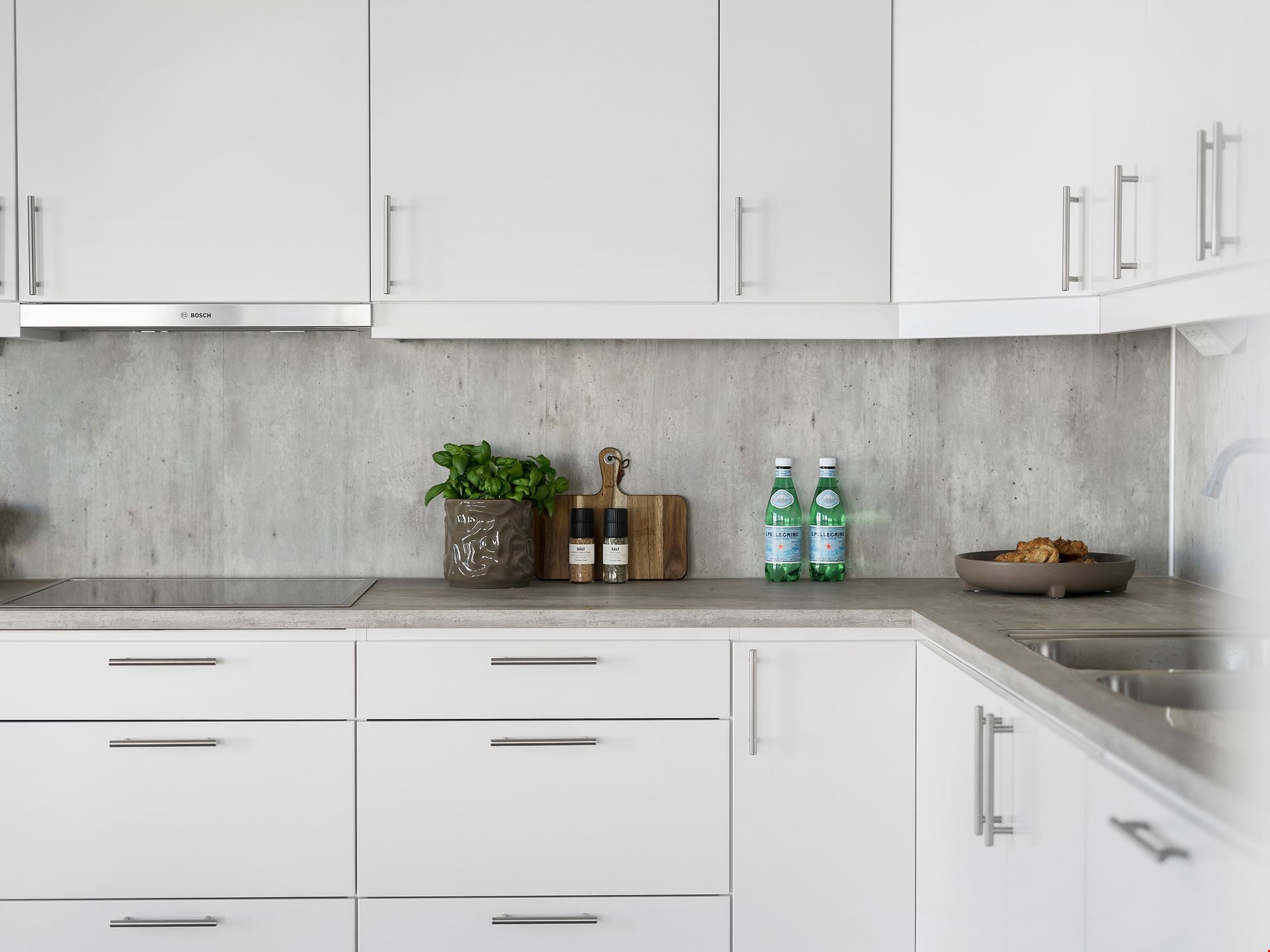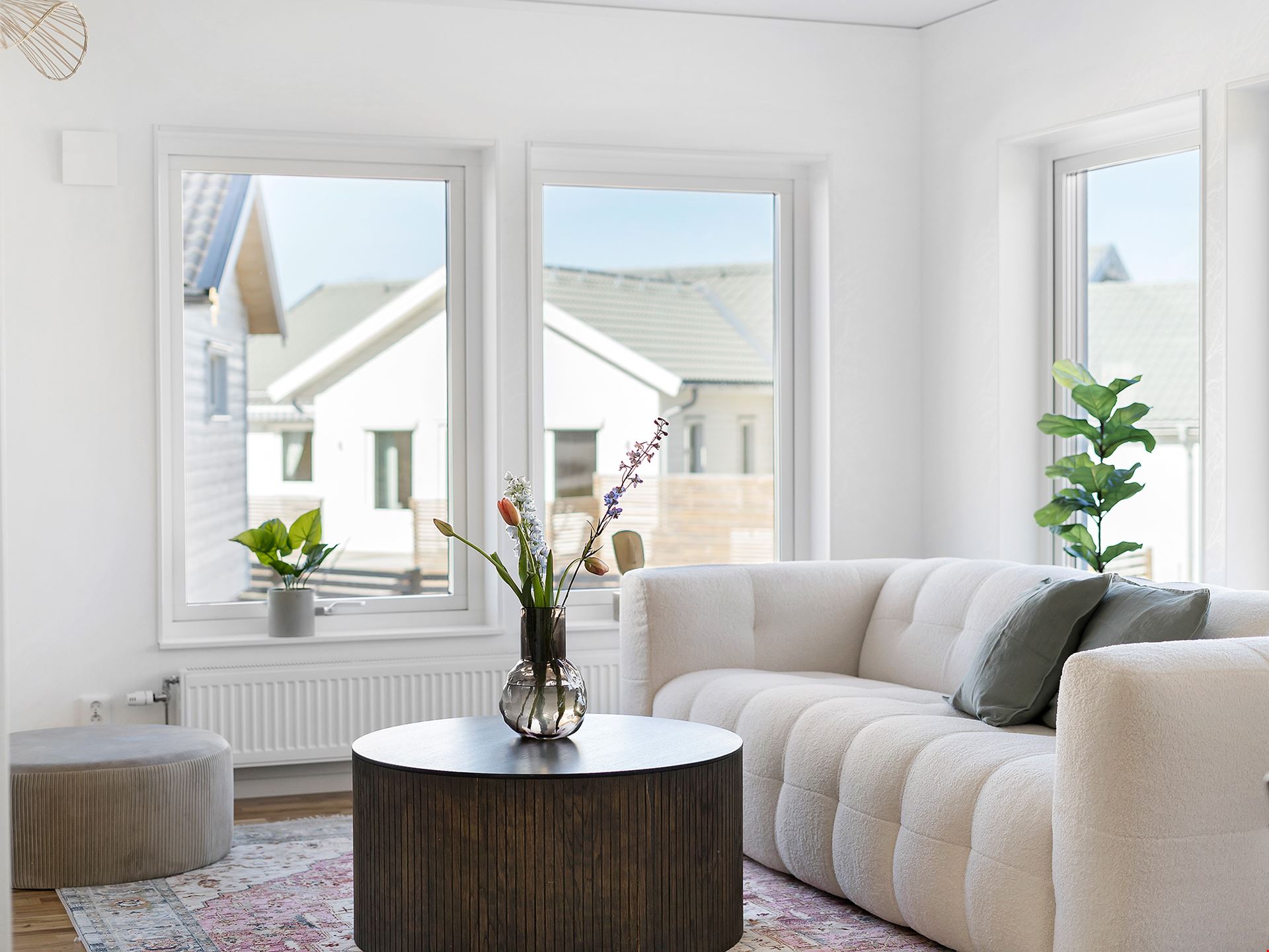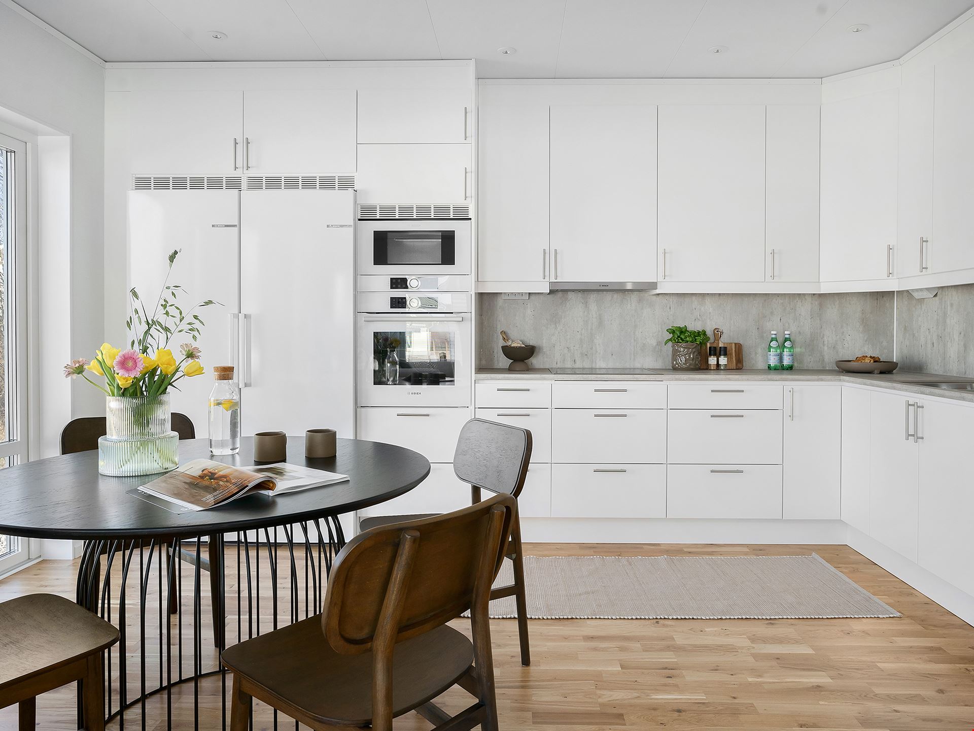 Köket kommer från Vedum och alla vitvaror kommer från Bosch. Här behöver du inte krångla med mängder av tillval. Badrummen bjuder på kakel och klinker med komfortgolvvärme, inredning från Vedum och en stilren duschhörna – och i tvättstugan väntar både tvättmaskin och torktumlare på att ta hand om din tvätt.