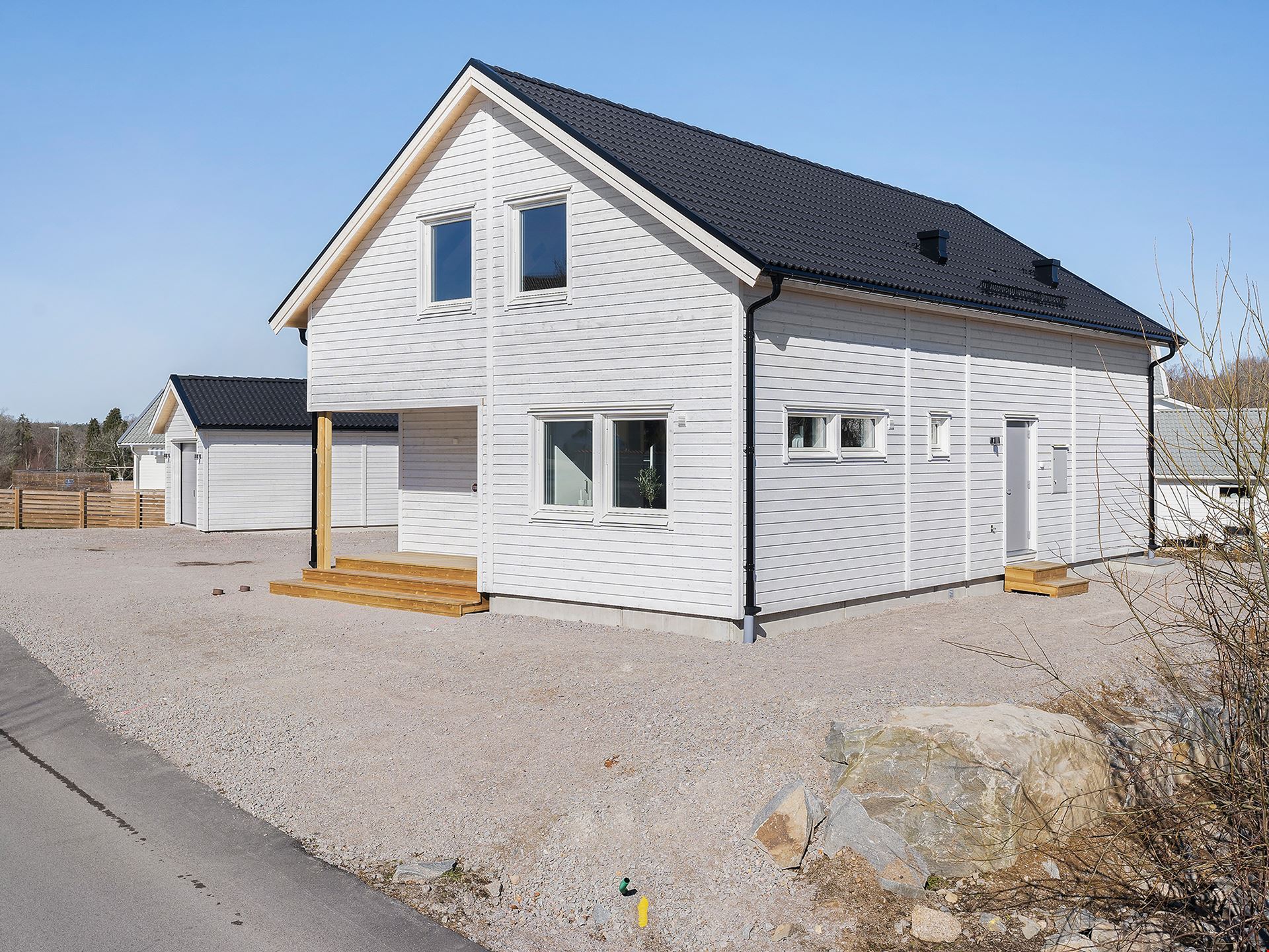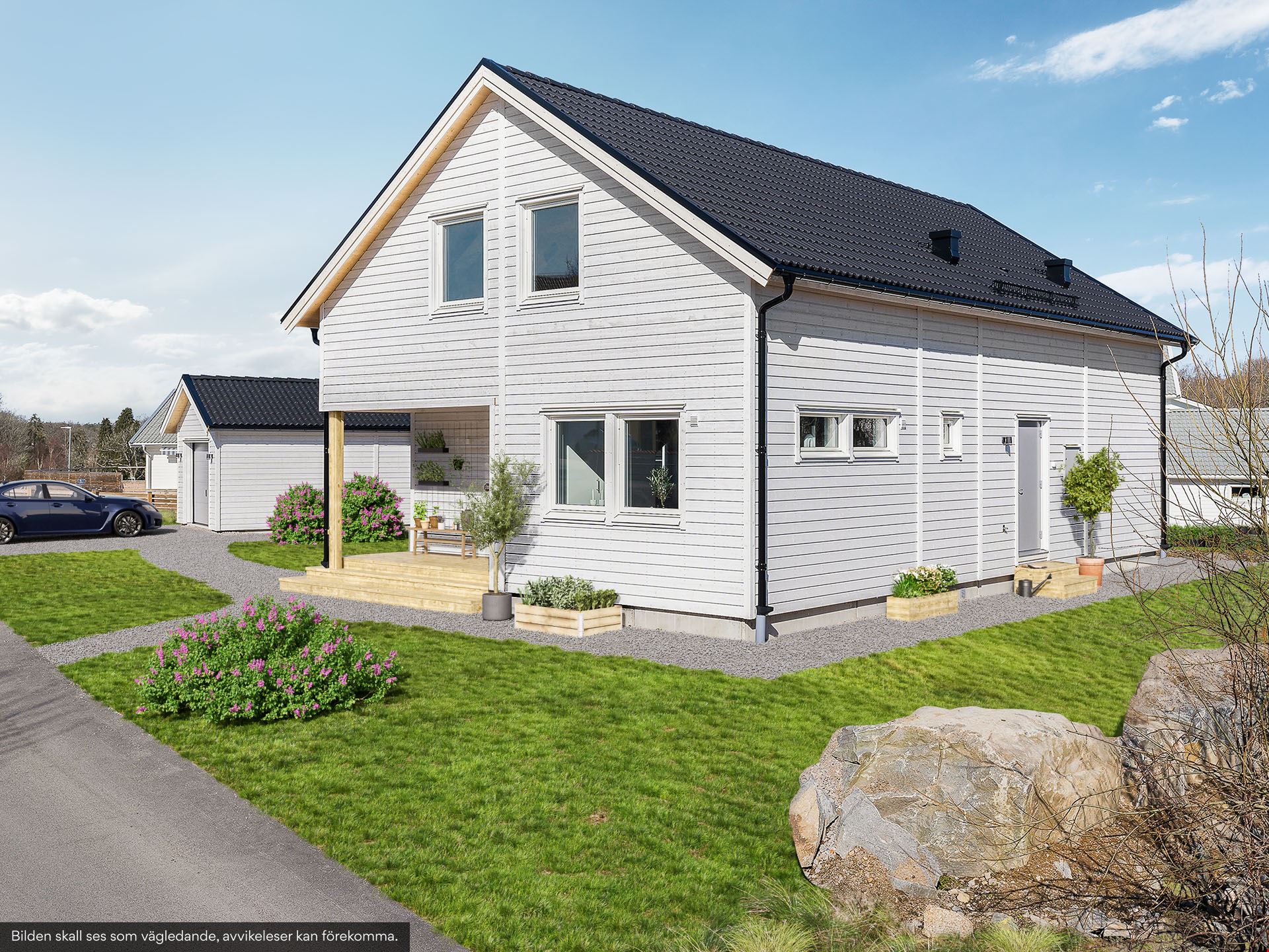 På tomten kommer det anläggas gräsmatta och hårdgjorda gångytor. Till huset hör även ett garage.