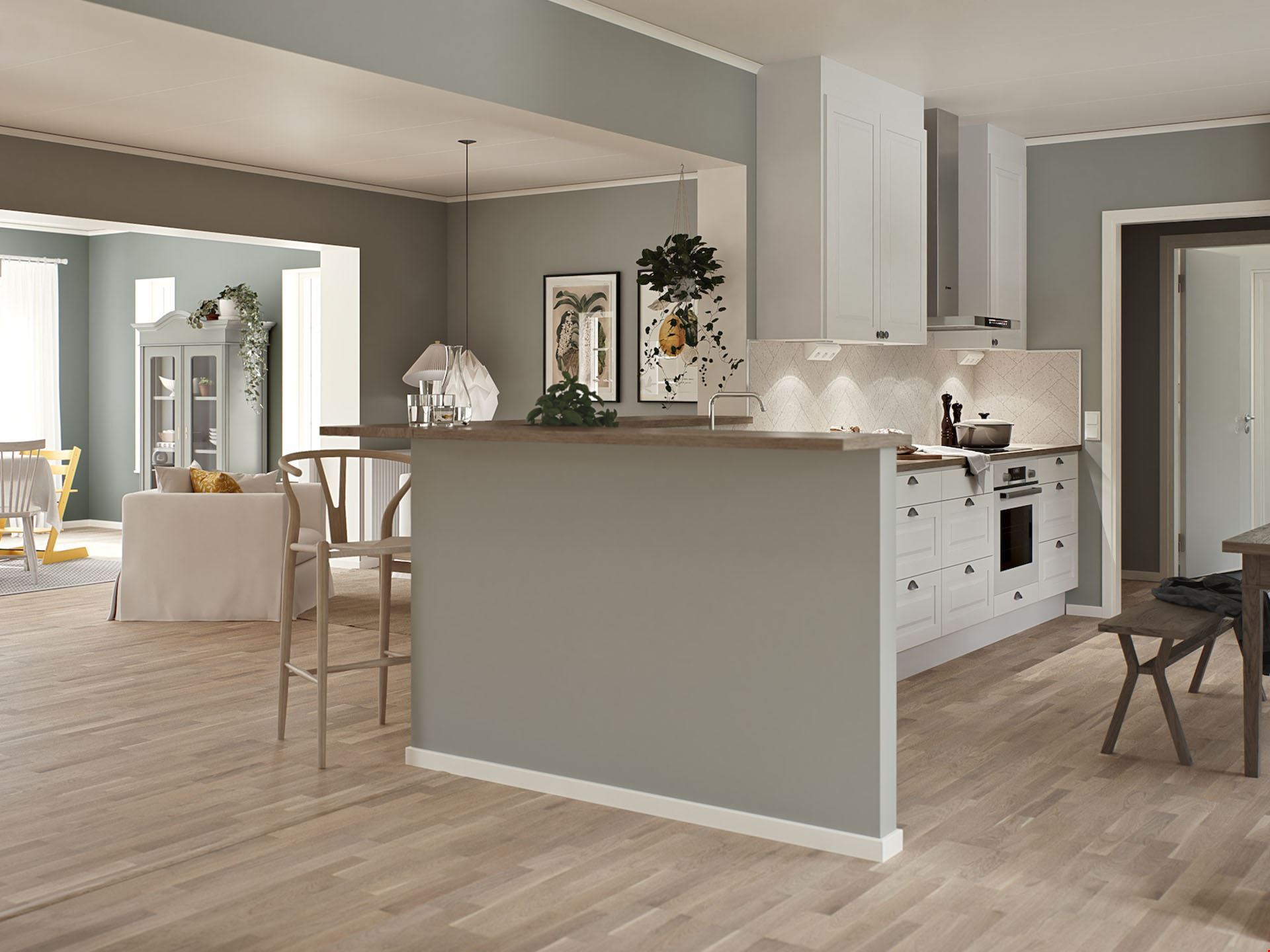Villa Adelöv är ett av våra mest älskade hus – och det är lätt att förstå varför. Här sträcker sig de öppna sociala ytorna från entrén hela vägen ut till dubbeldörrarna mot trädgården. Perfekt för både vardagsmys och stora kalas med bardisken som naturlig samlingspunkt.