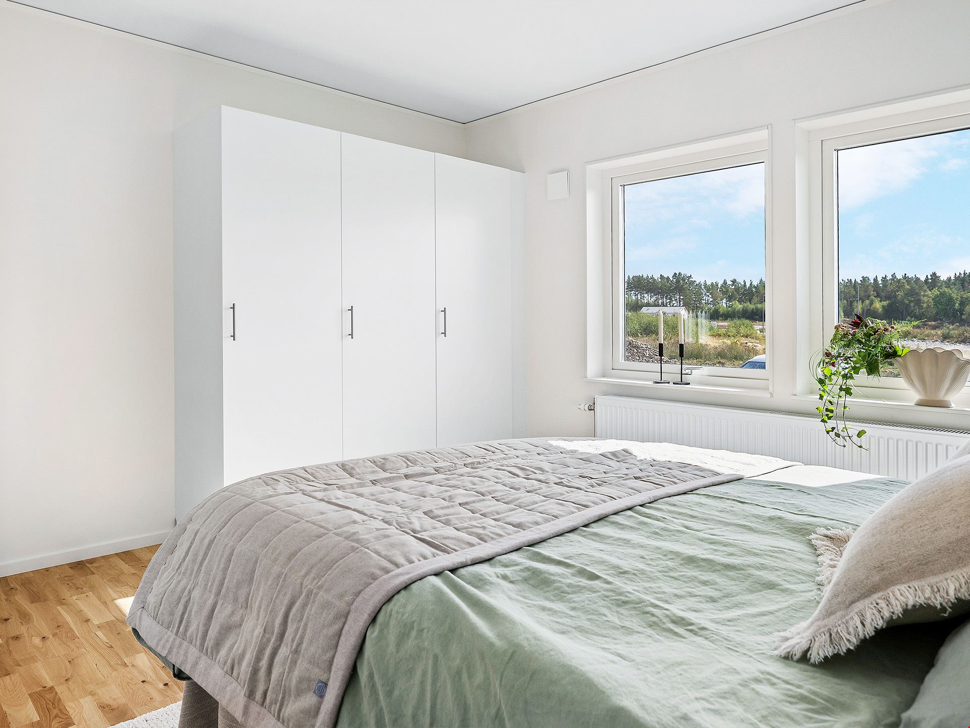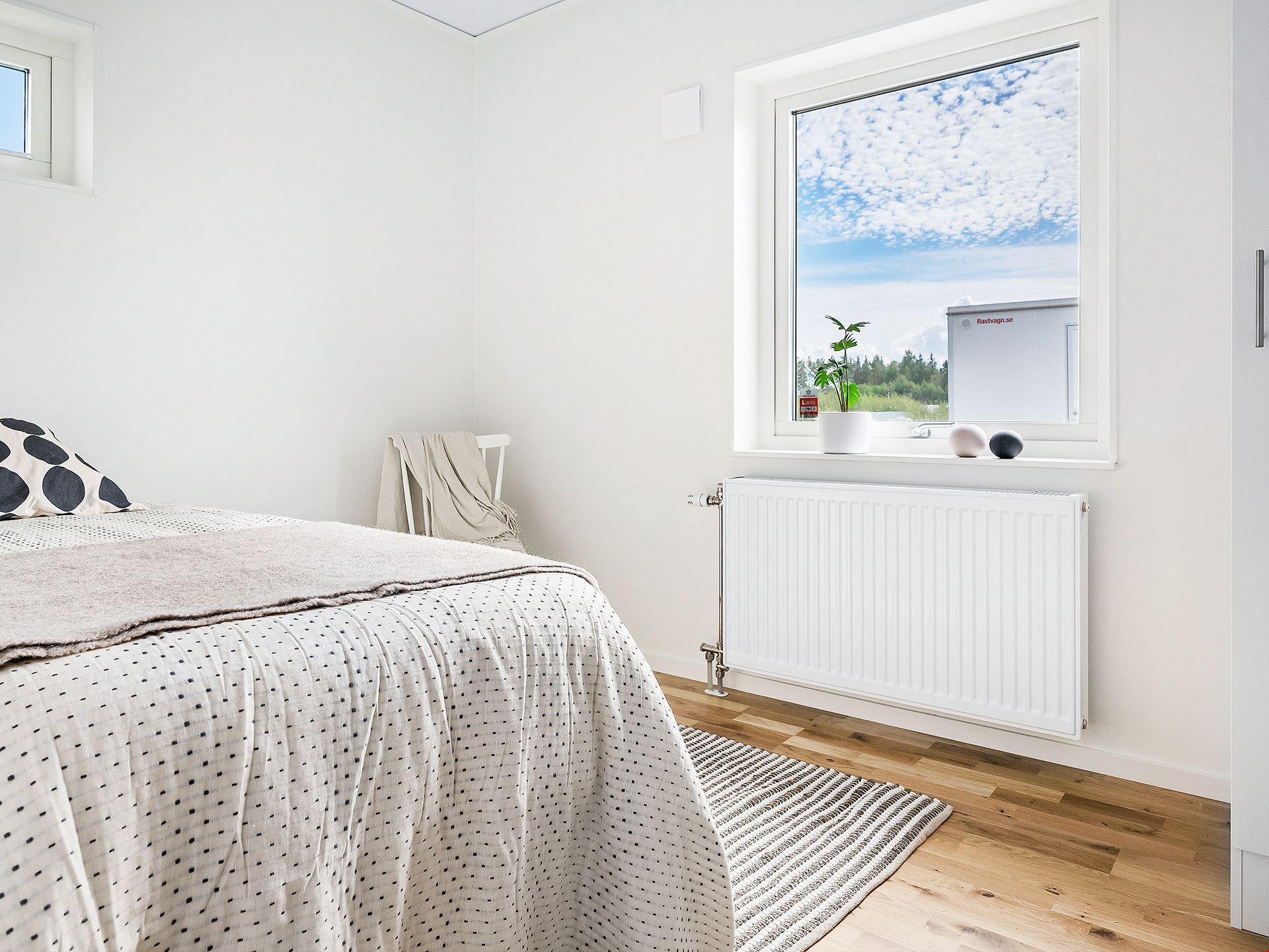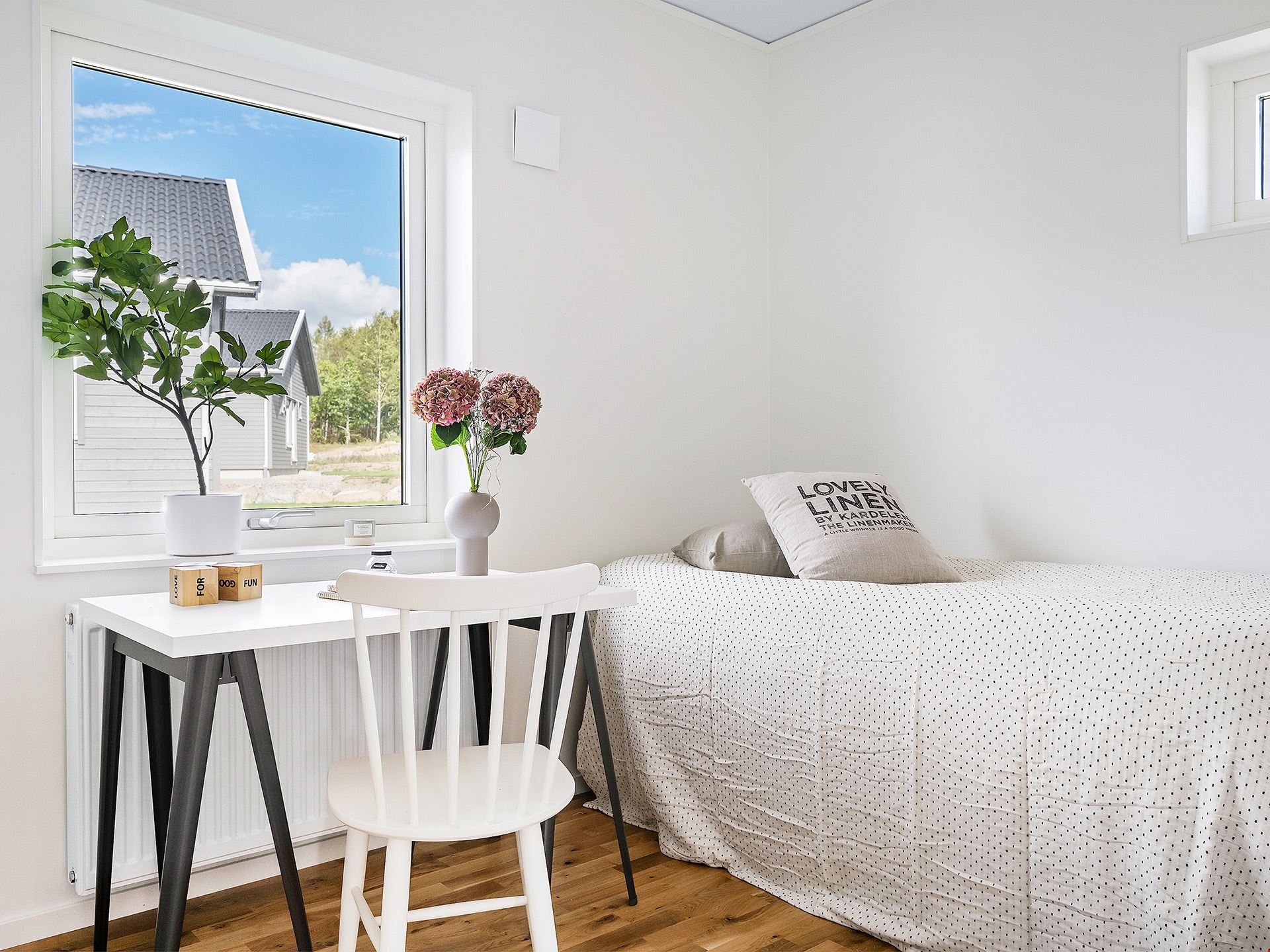 Om vi istället tar till vänster i entrén passerar vi husets större badrum med WC och dusch och kommer sedan in i husets barnavdelning. Här finns tre mysiga sovrum och ett allrum som passar lika bra som lekrum när barnen är små som för kompishäng för de lite större. Som sagt, det här är ett riktigt familjehus med ytterst välplanerade kvadratmetrar.