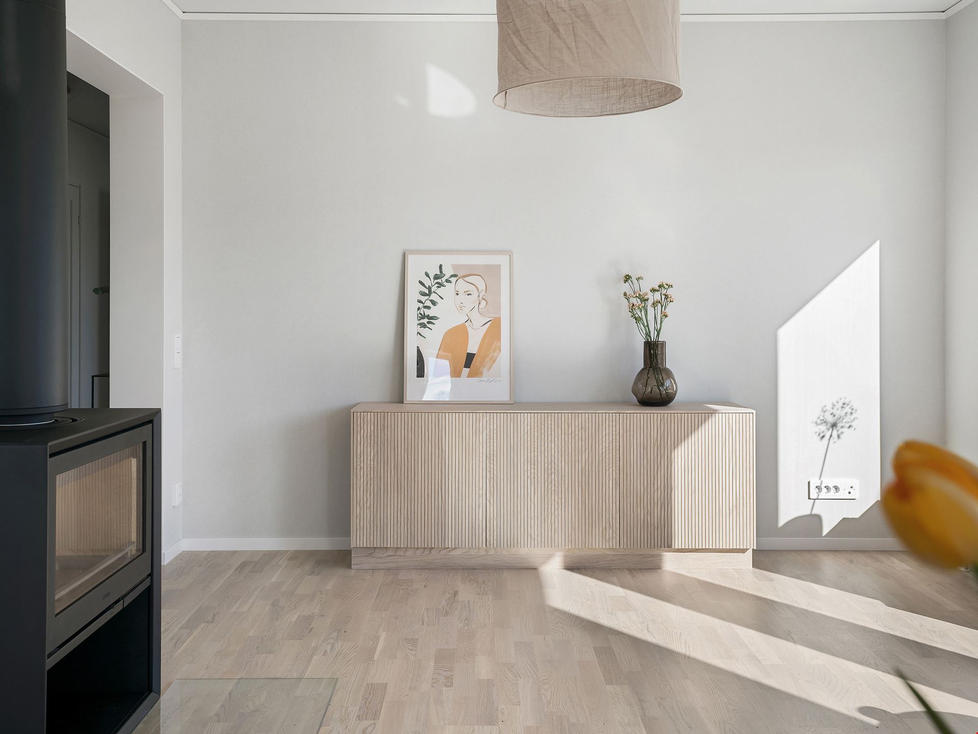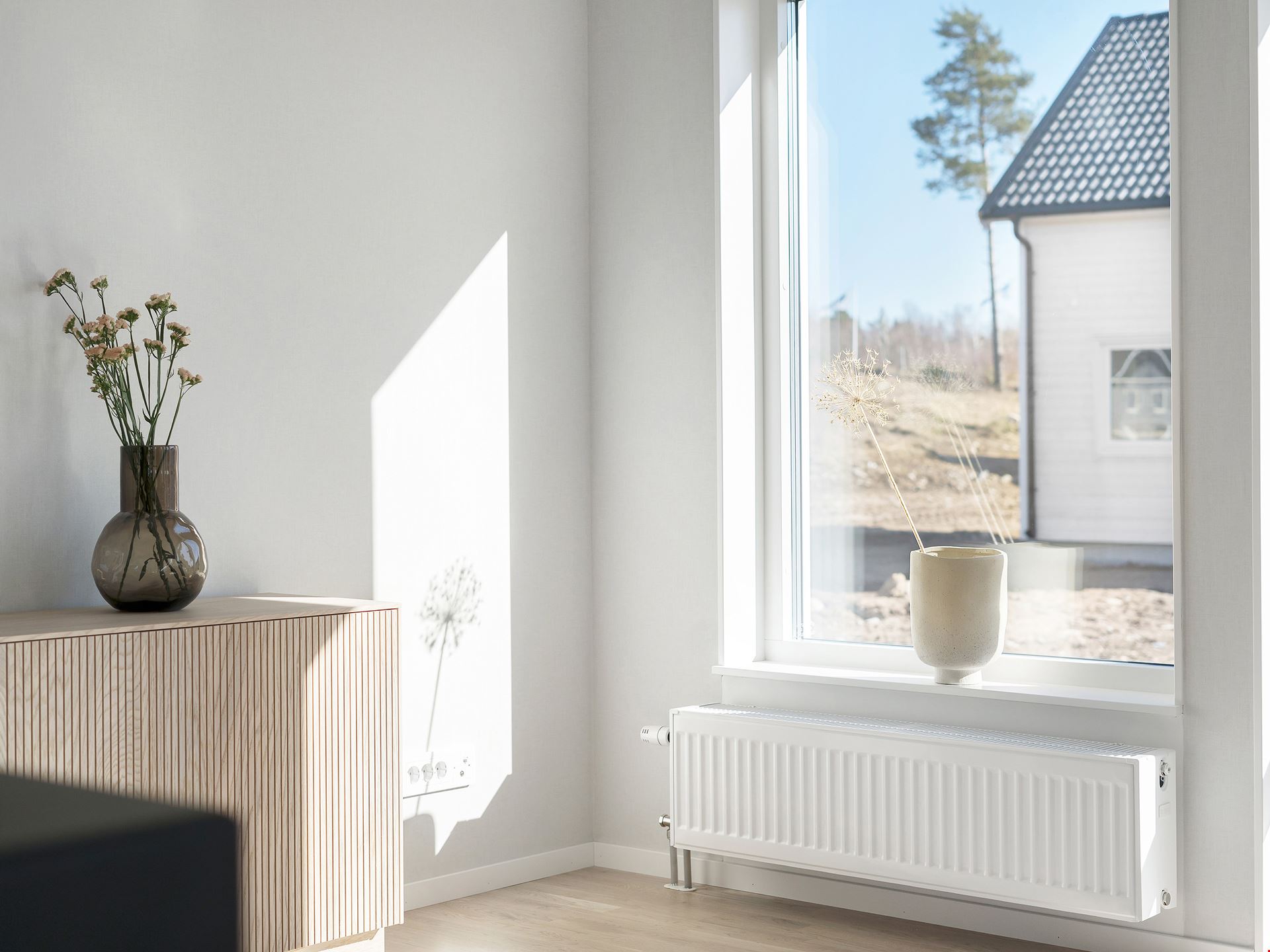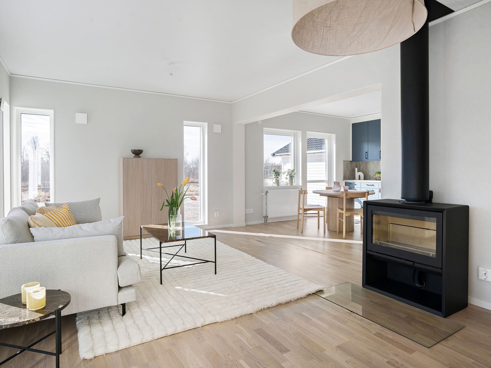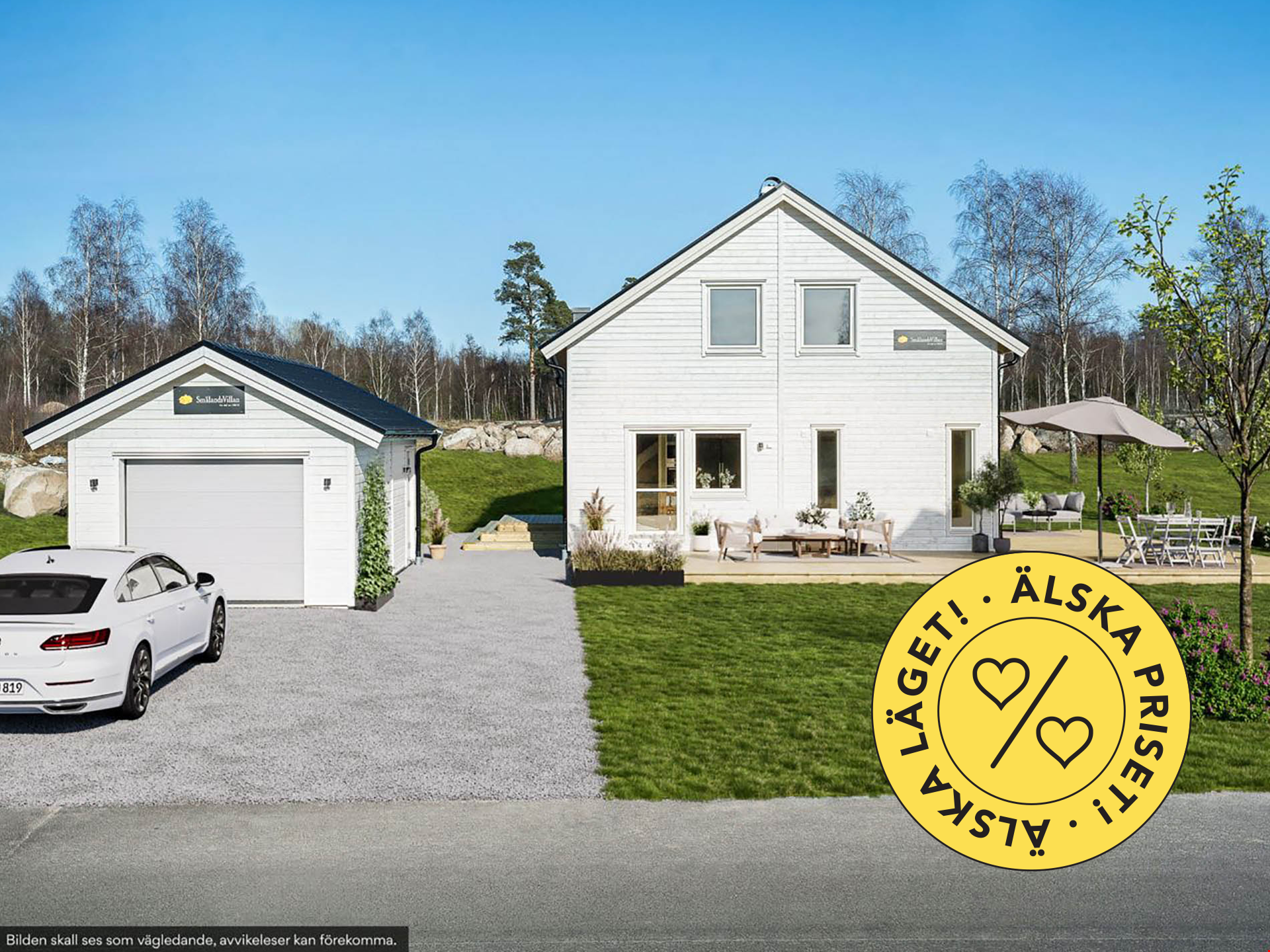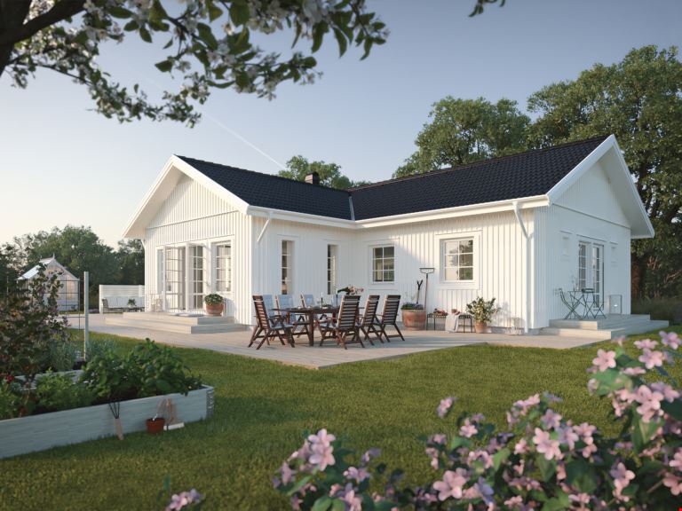 Låt oss presentera ett fantastiskt trevliga hus med förhöjt väggliv. Villa Eksjö är en av våra mest populära husmodeller. Här har vi valt att uppföra huset med liggande panel, svart tak och fönster i gavelspetsarna. Invändigt har huset en genomgående hög standard samt bra planlösning och är inrett med vitpigmenterat mattlackatat 3-stavs parkettgolv.