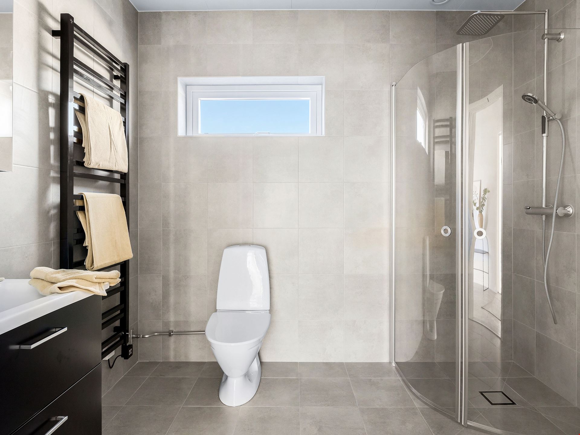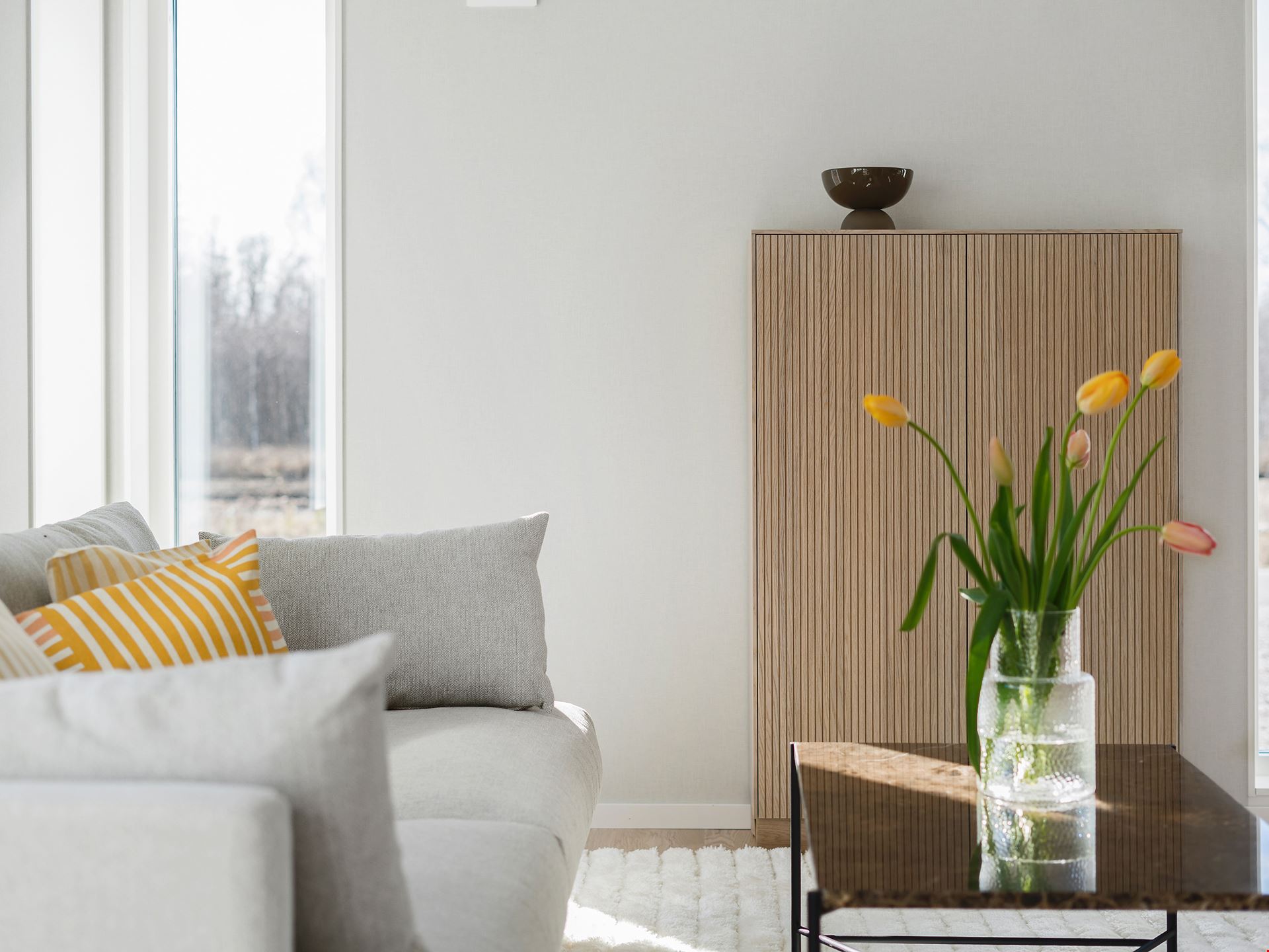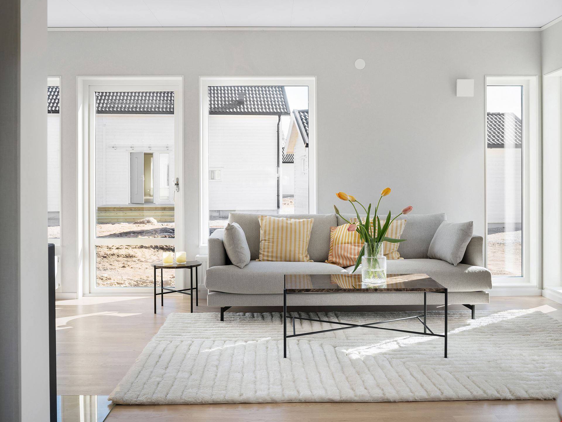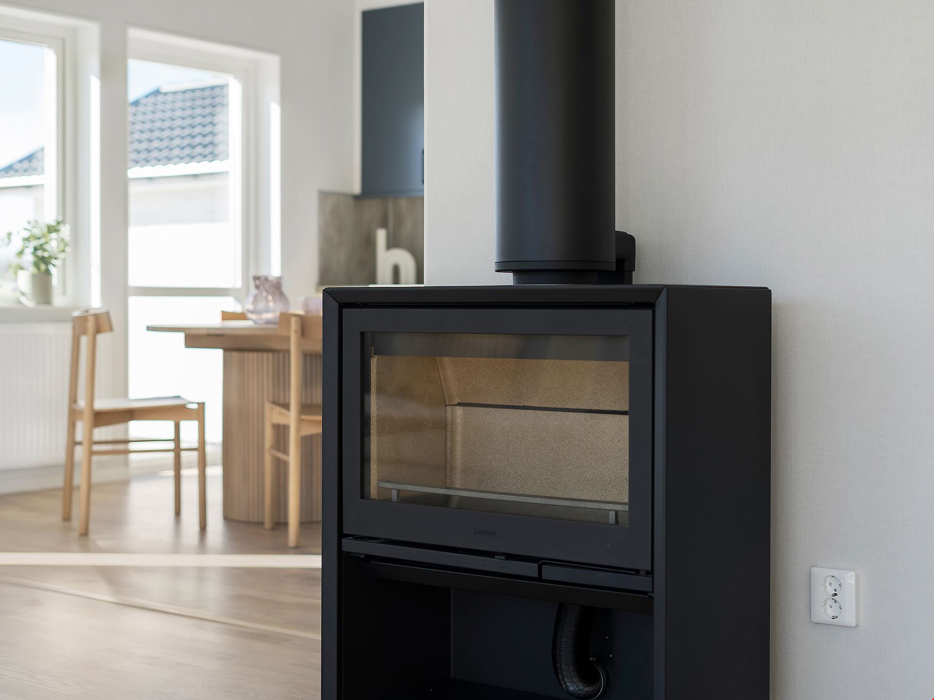 Låt oss presentera ett fantastiskt trevliga hus med förhöjt väggliv. Villa Eksjö är en av våra mest populära husmodeller. Här har vi valt att uppföra huset med liggande panel, svart tak och fönster i gavelspetsarna. Invändigt har huset en genomgående hög standard samt bra planlösning och är inrett med vitpigmenterat mattlackatat 3-stavs parkettgolv.