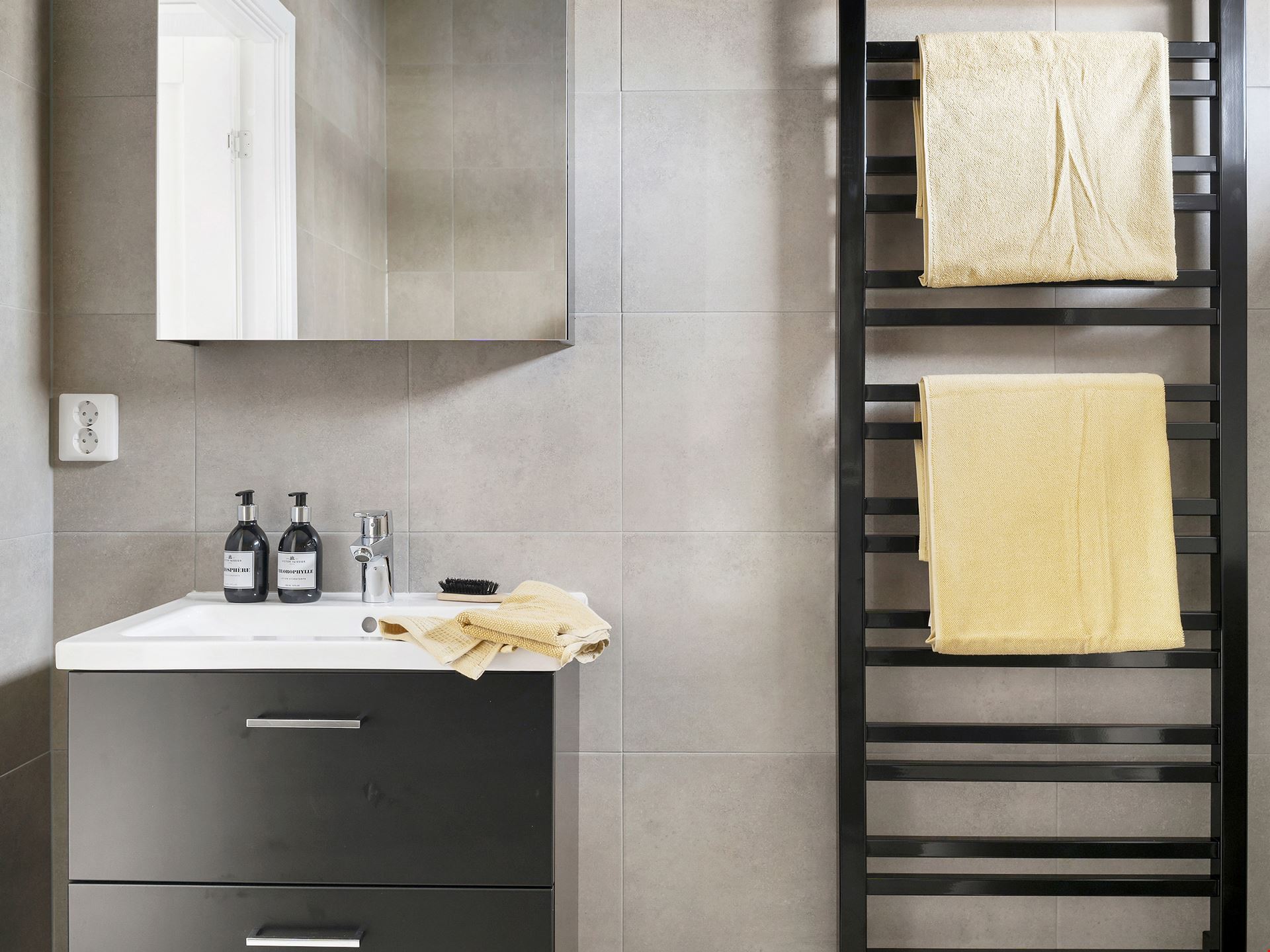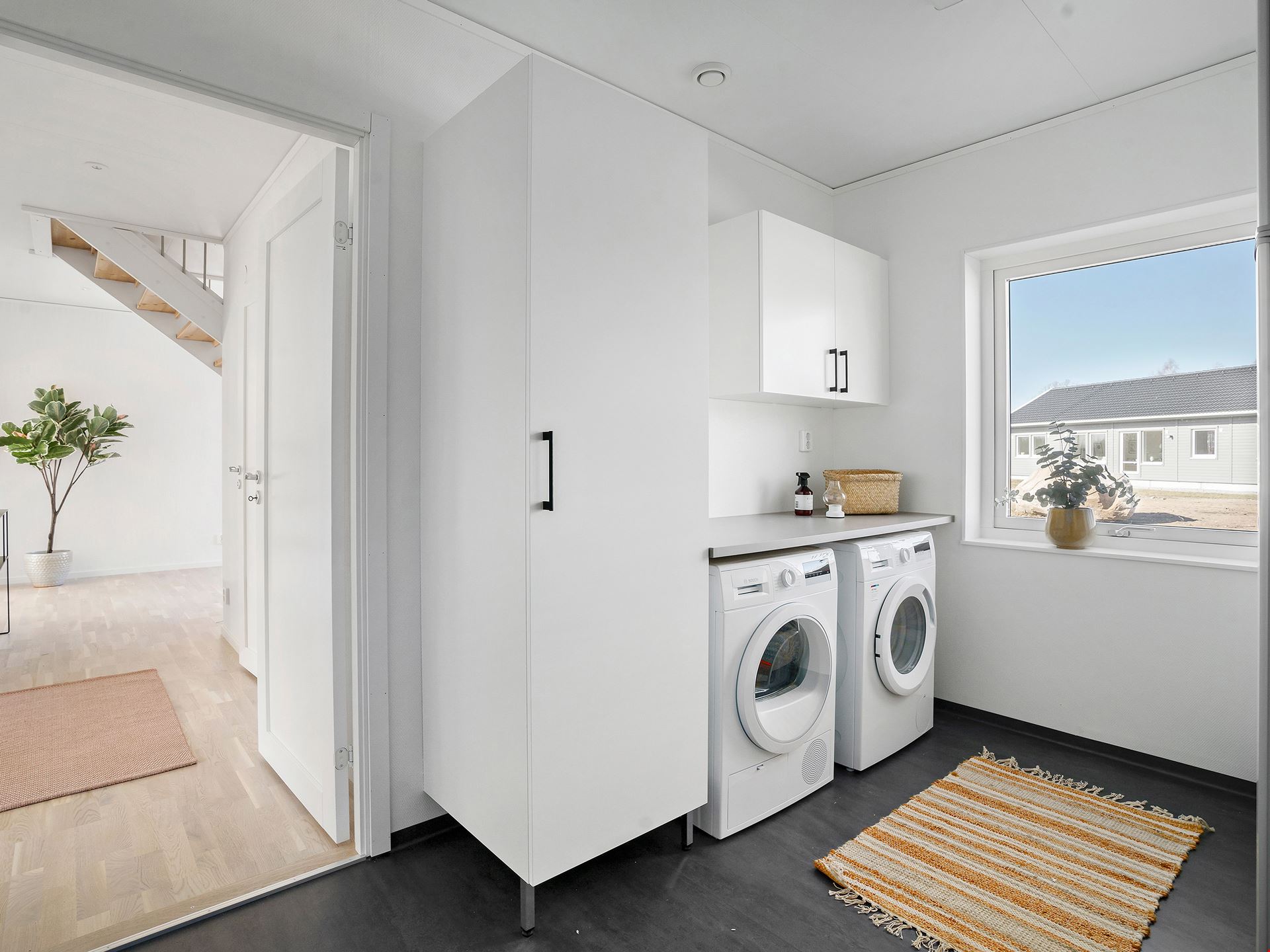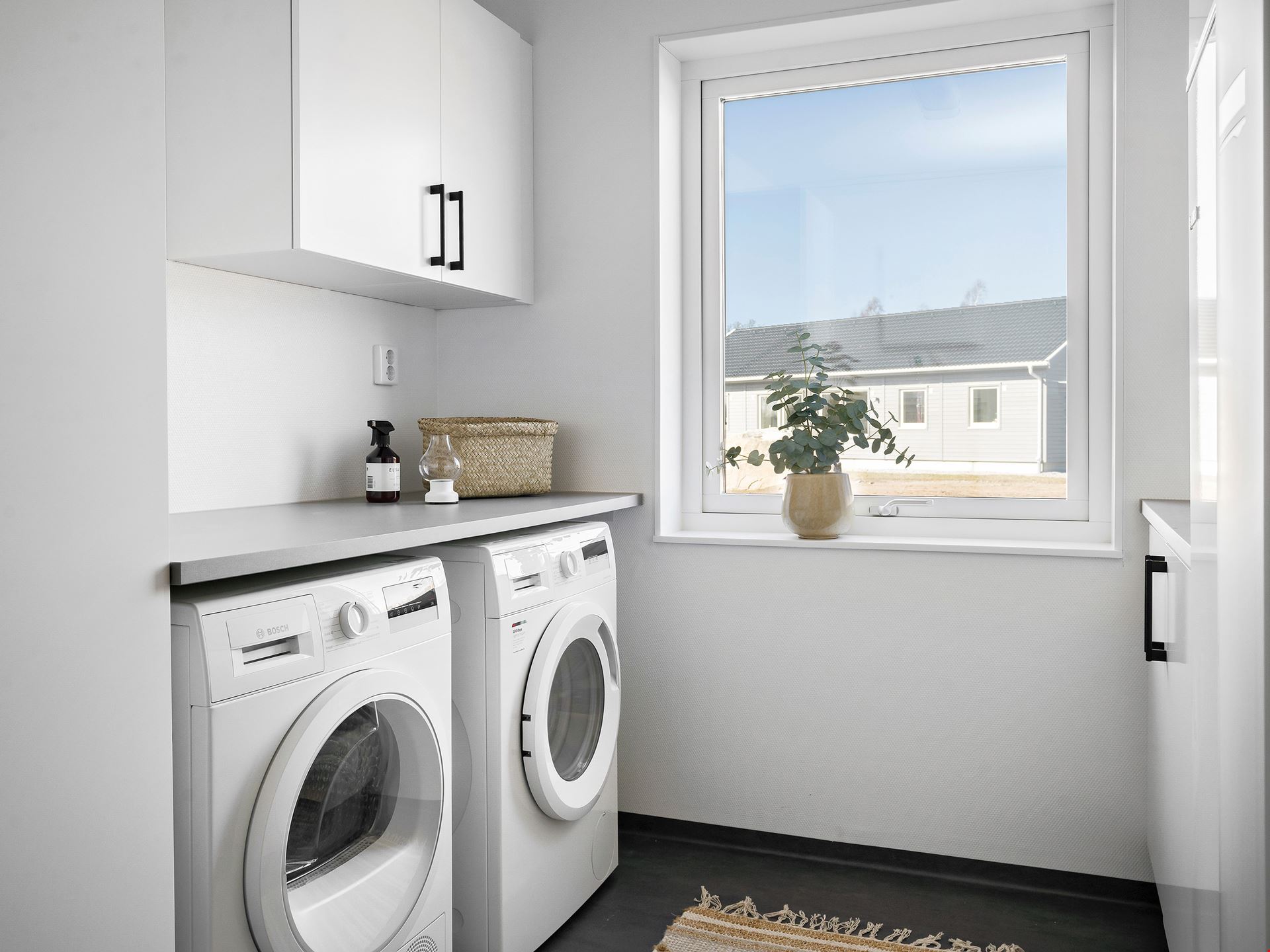 I tvättstugan väntar både tvättmaskin och torktumlare på att få ta hand om din tvätt.