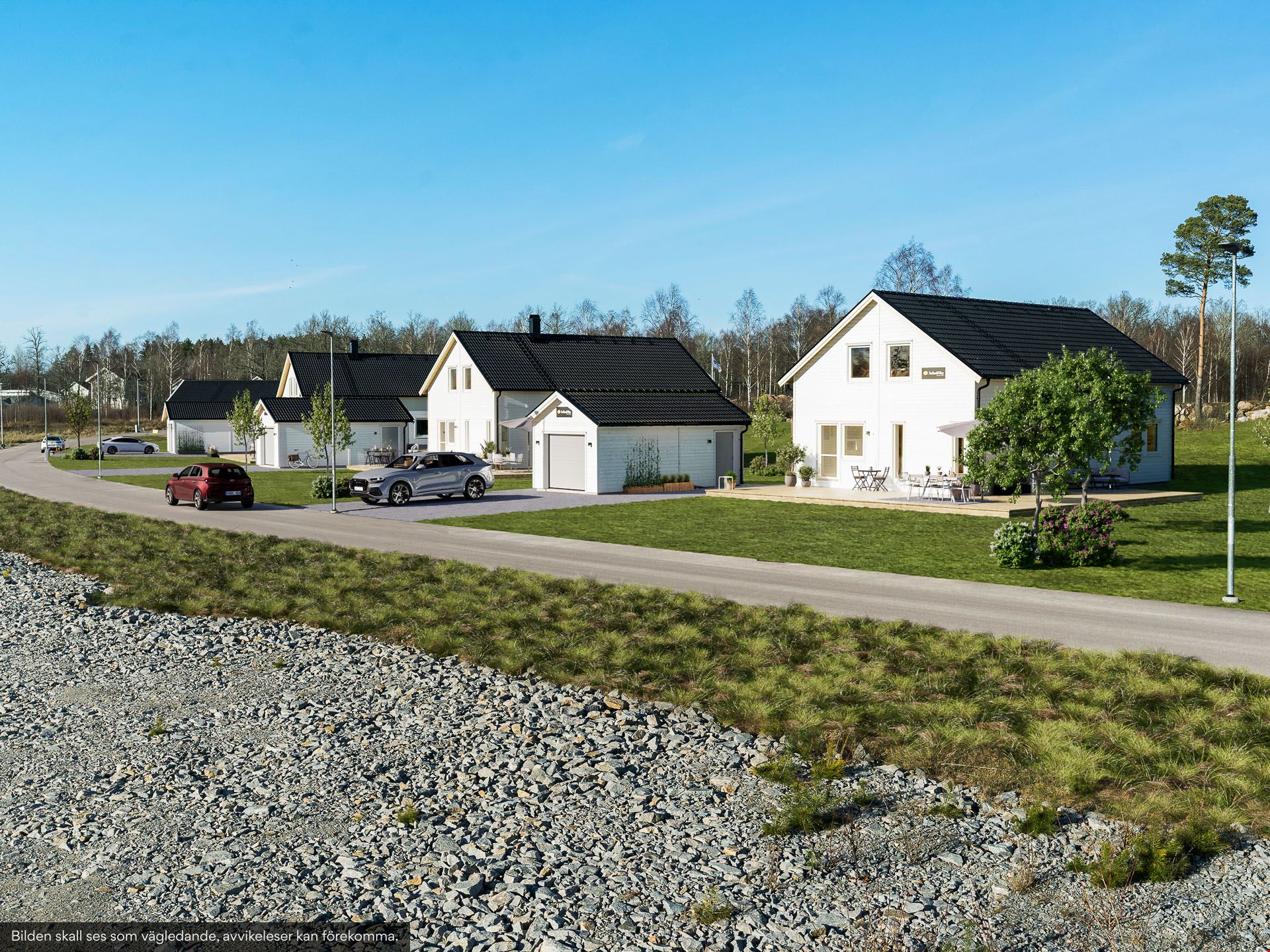 Till huset hör även ett isolerat garage om 26,5 kvm med monterad garageportsautomatik - inklusive 2 handsändare. På tomten kommer det anläggas hårdgjorda gångytor samt utrullad gräsmatta som är på plats i april/maj. Samt fyra odlingslådor.