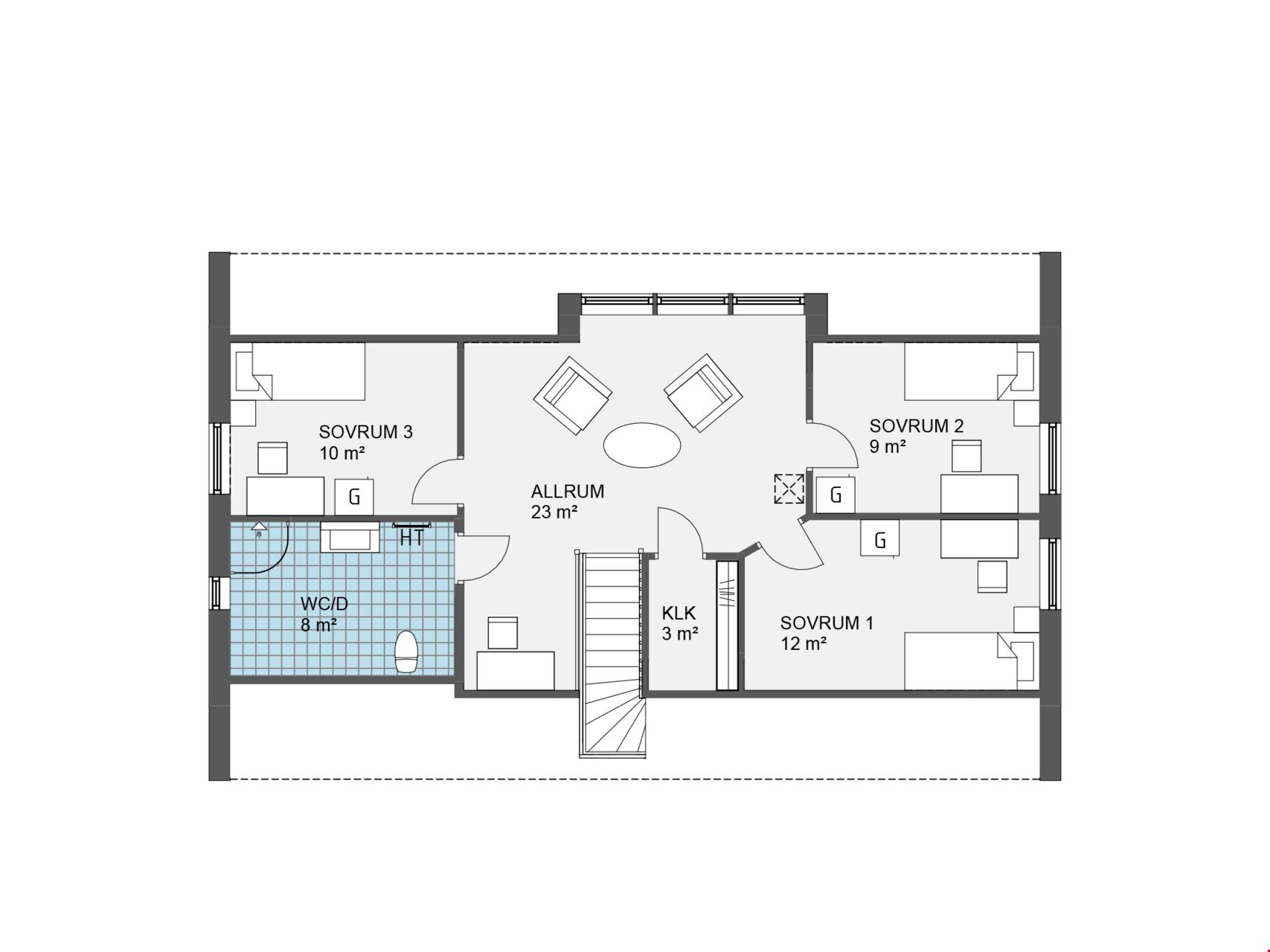 Den här versionen av Villa Kalmar har ett modernt uttryck med funkispanel och kort takfot. Entrévåningen bjuder på en ljus och öppen planlösningen mellan vardagsrum och kök, ett rymligt sovrum samt praktiskt klädvårdsrum med groventré. En trappa upp väntar tre sovrum och ett allrum med arbetshörna, plus badrum och klädkammare. Självklart har du möjlighet att sätta din prägel på hemmet med några utvalda tillval.