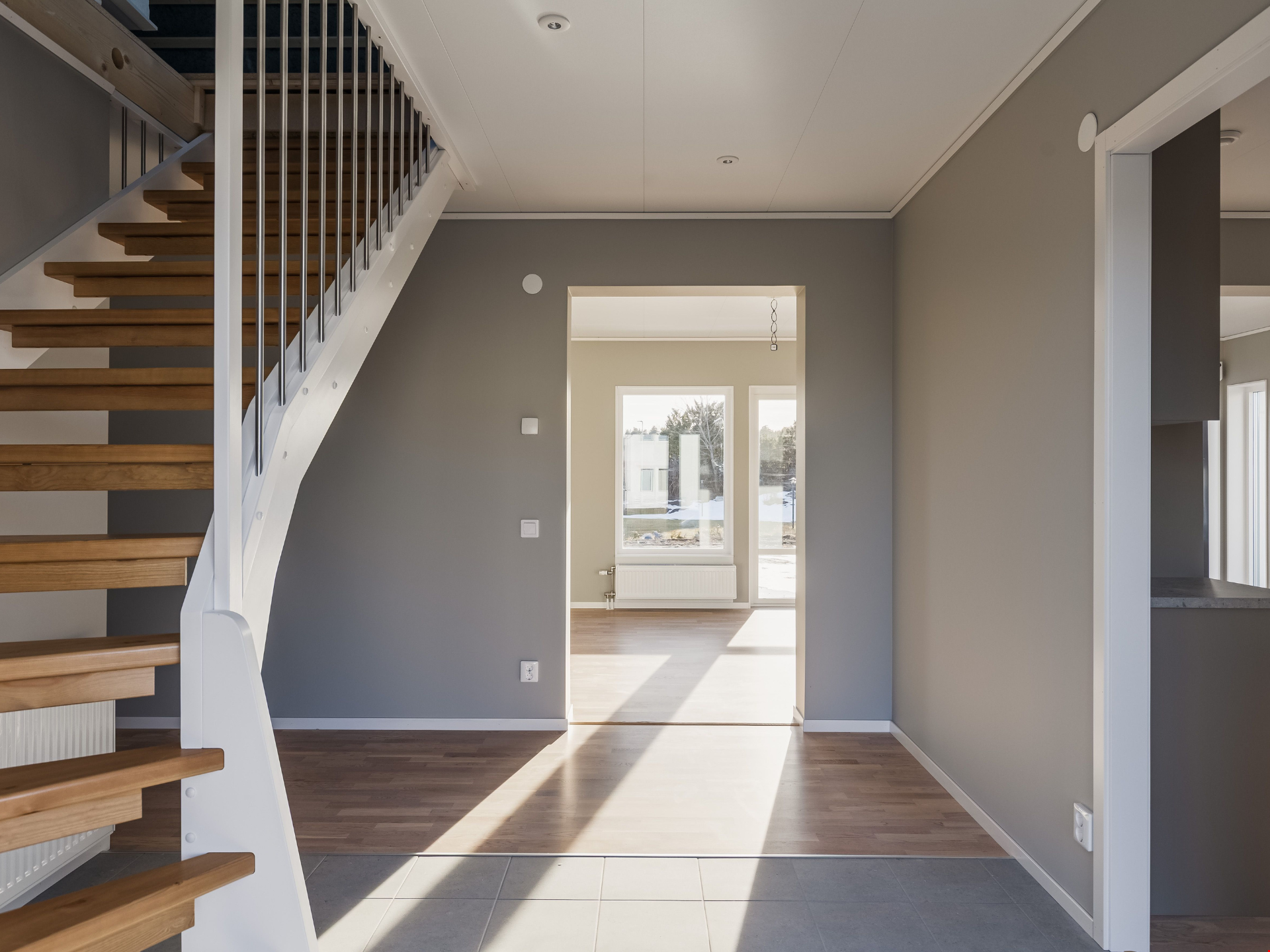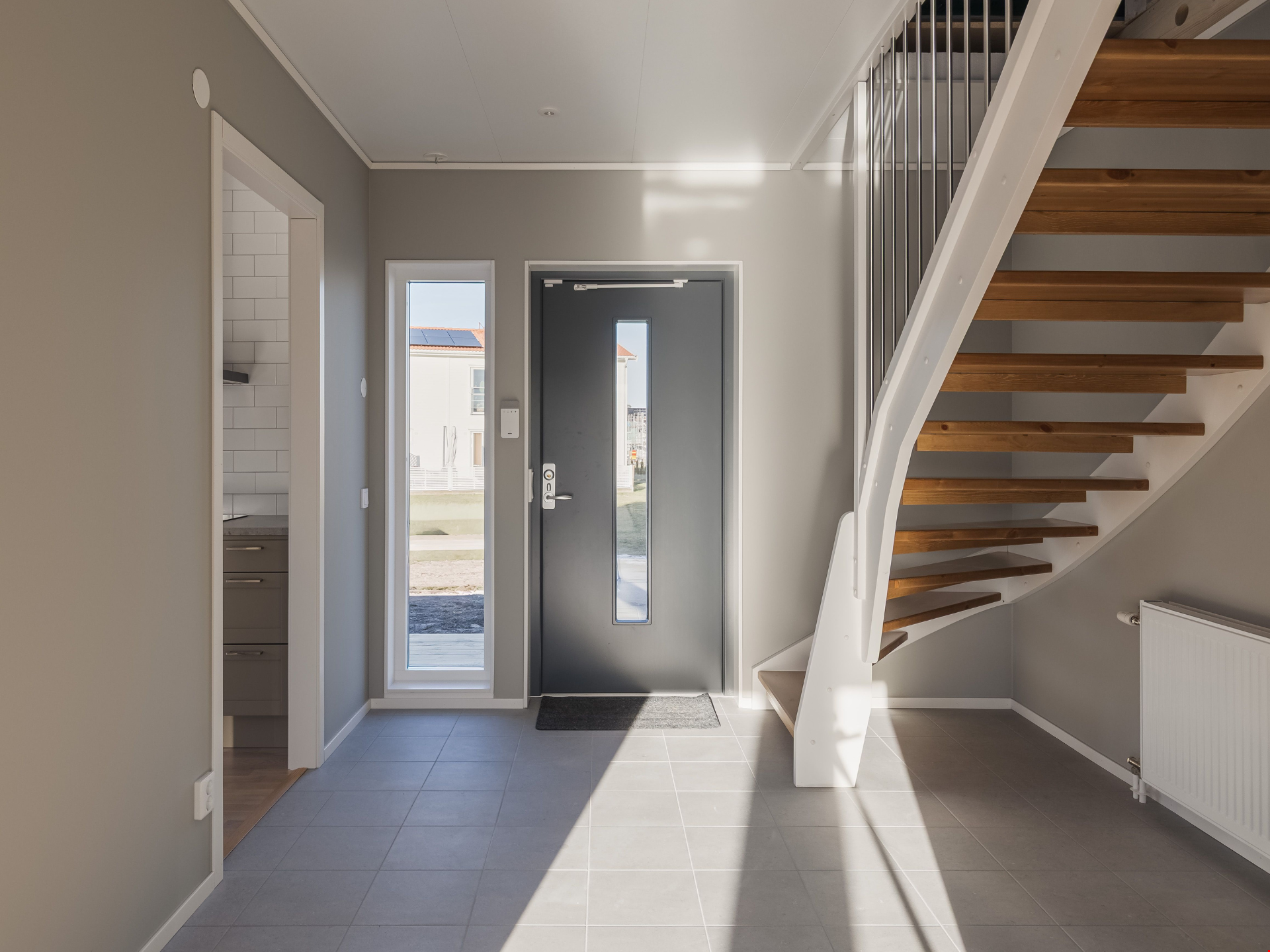 Entréplanet bjuder på öppna och sociala ytor där kök och vardagsrum möts i en ljus och trivsam planlösning. Här finns gott om plats för både vardagsliv och trevliga middagar med familj och vänner. Dessutom finns ett sovrum och smarta förvaringslösningar som gör vardagen smidig från start.