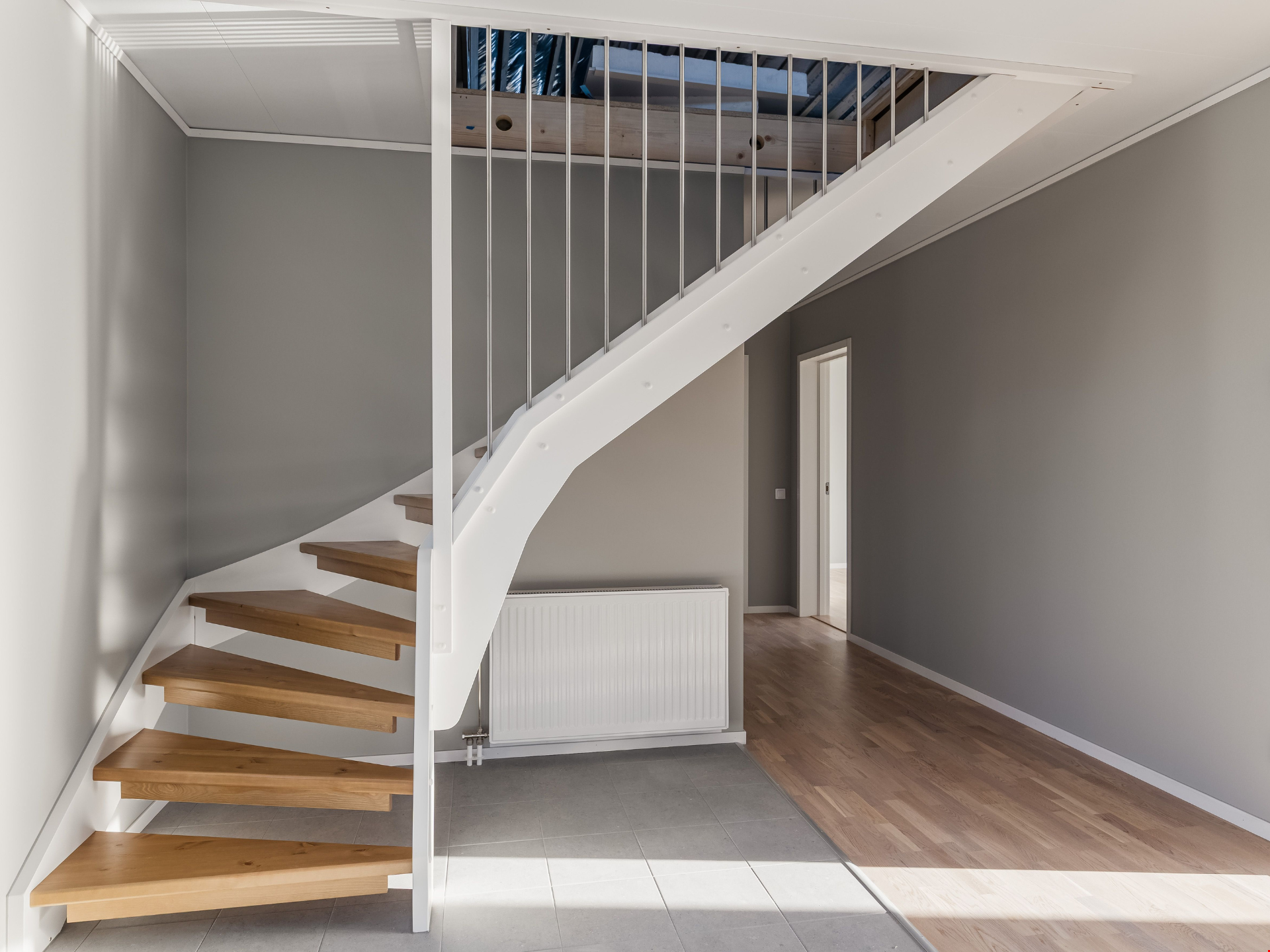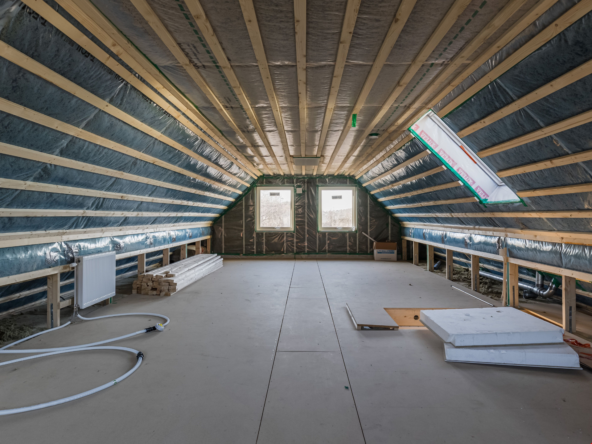 En trappa upp väntar en oinredd övervåning – perfekt för dig som vill kunna växa i huset. Här kan du i lugn och ro skapa fler sovrum, ett allrum eller kanske ett hemmakontor när behovet uppstår. Du flyttar alltså in och bor bekvämt direkt, och kan sedan forma övervåningen efter dina egna planer och drömmar.