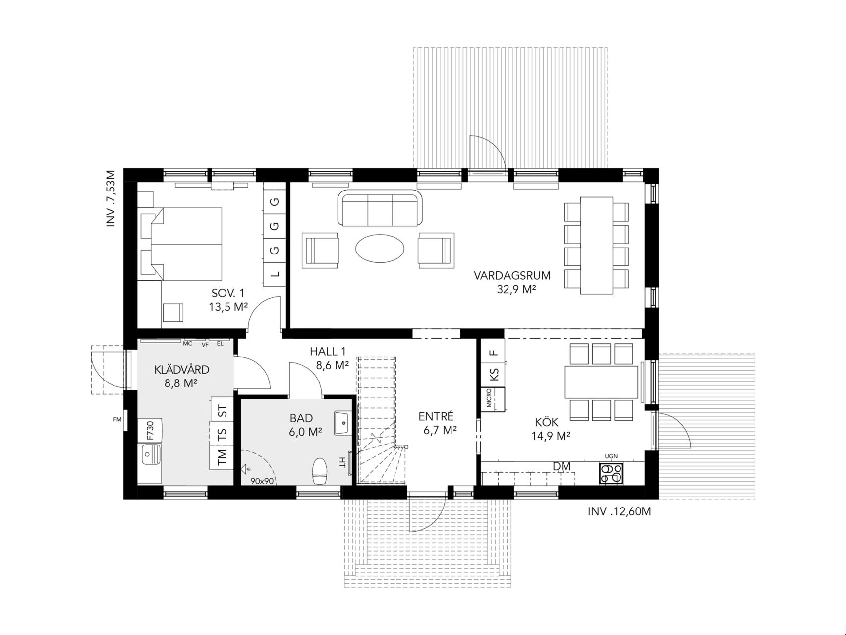 Köket ligger helt öppet mot det stora vardagsrummet som bjuder på ett fantastiskt ljusinsläpp och rymmer såväl matbord som soffgrupp utan problem. Från vardagsrummet tar du dig ut på din altan som blir er alldeles egna lilla oas under sommarmånaderna. I andra änden av huset hittar du ett stort sovrum liksom husets tvättstuga – med praktisk groventré – och ditt nya, fräscha badrum. Huset levereras med klimatskal.