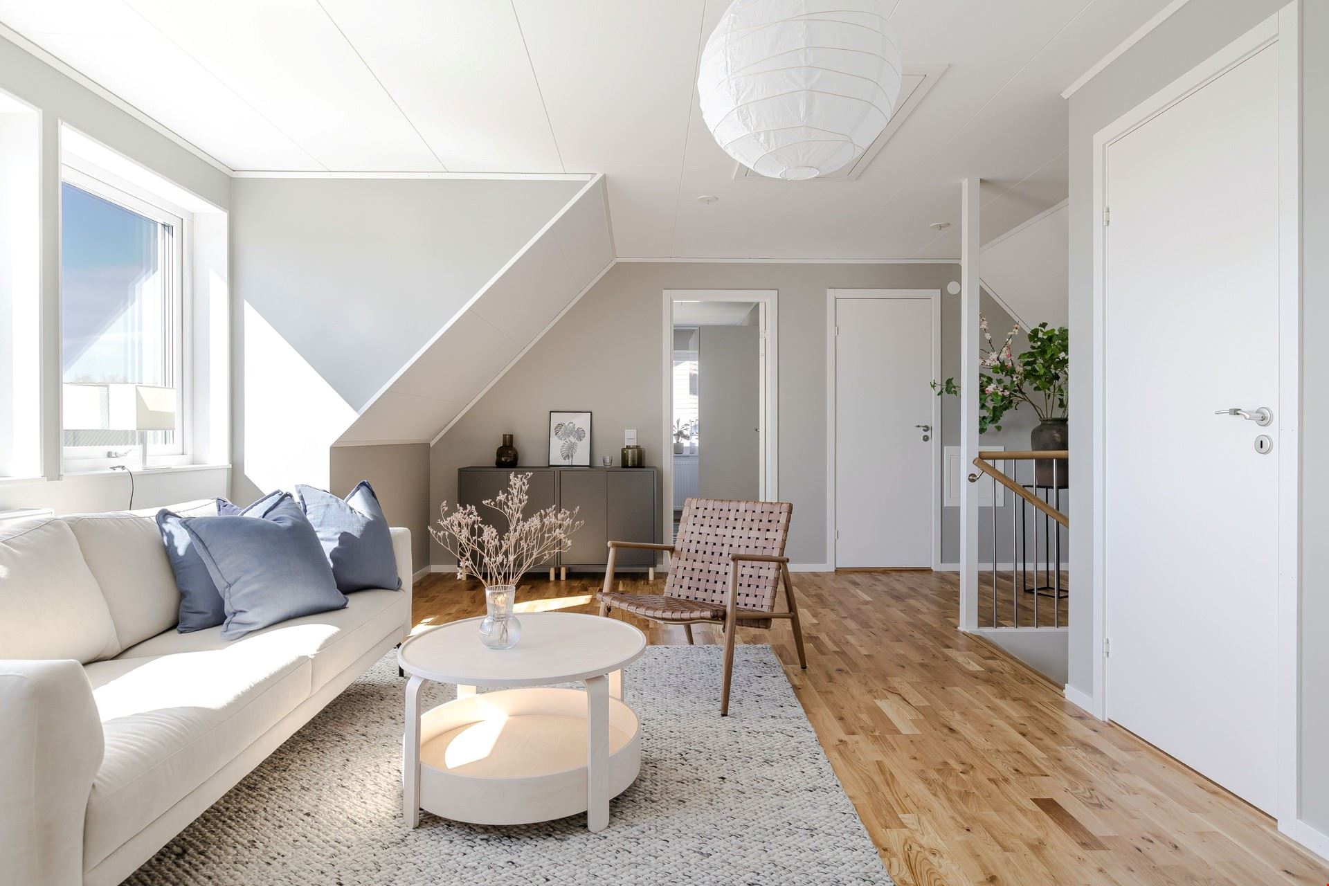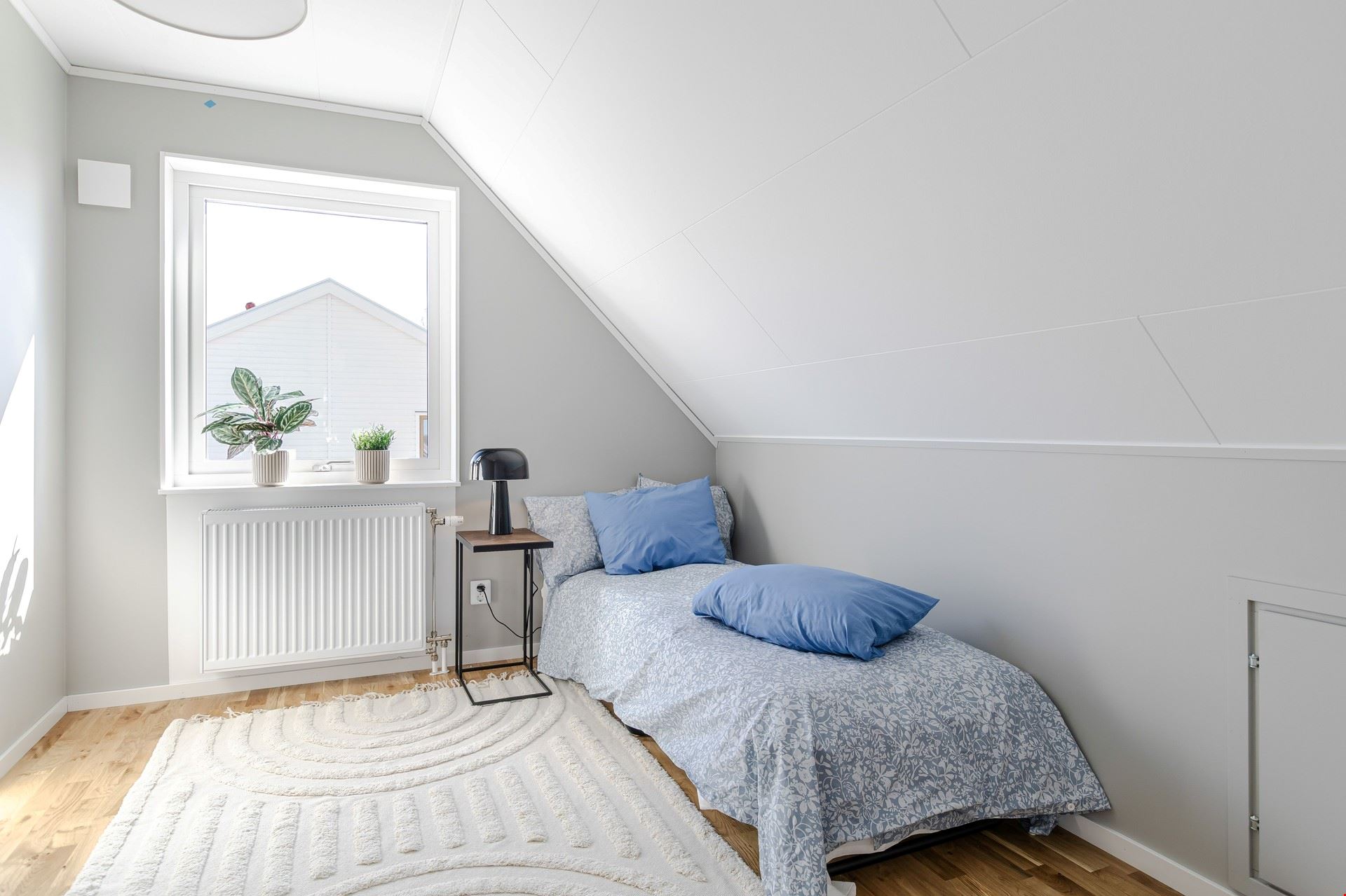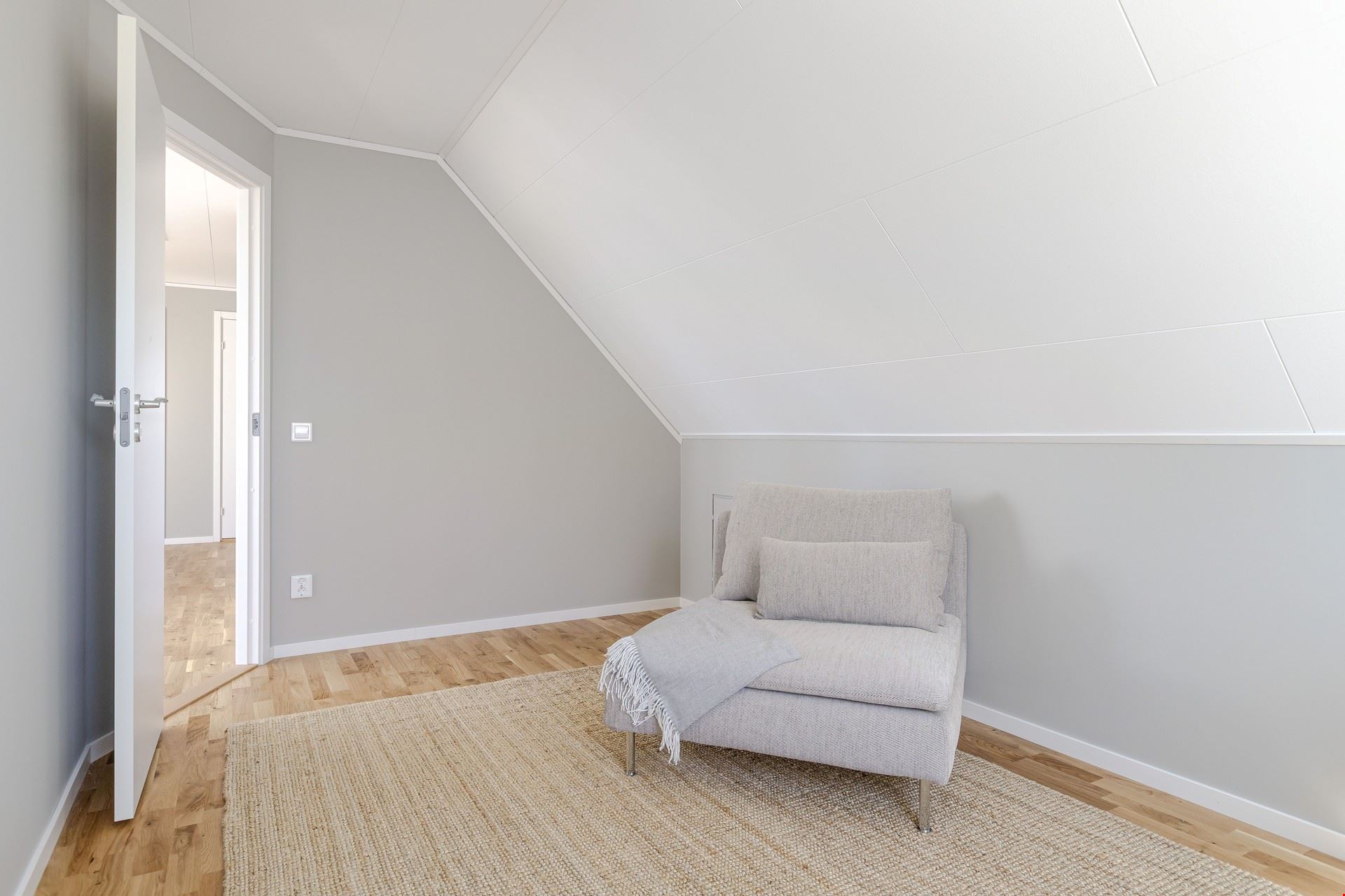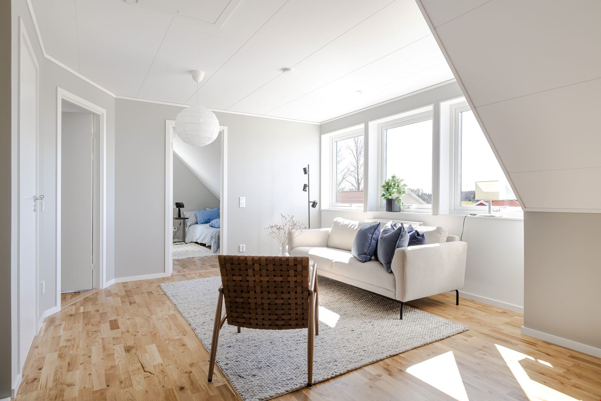 En trappa upp väntar tre ytterligare sovrum, ett badrum med dagsljusinsläpp samt ett mysigt allrum med takkupa. Perfekt som lekrum, filmhörna eller hemmakontor – du väljer själv. Här finns utrymme att växa, samla tonåringar, övernattande gäster eller kanske skapa det där hobbyrummet du länge drömt om.