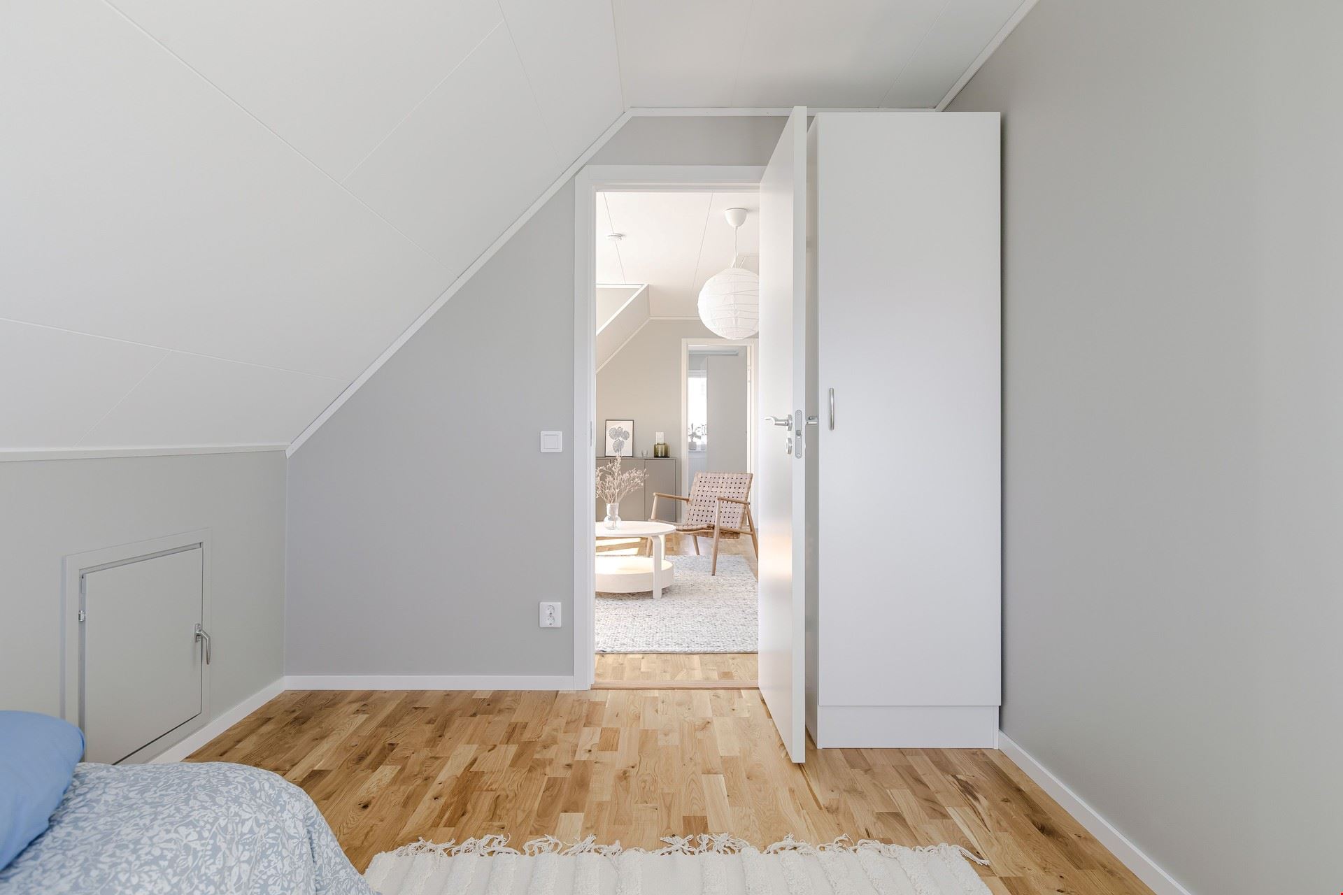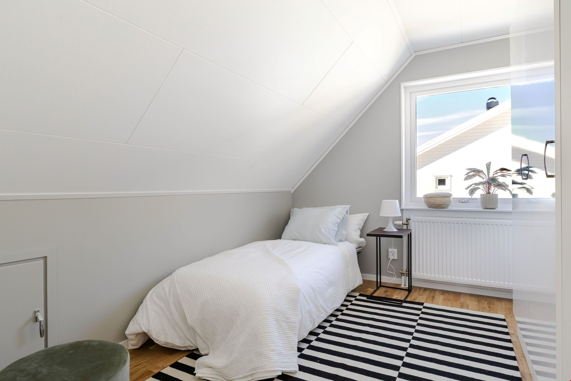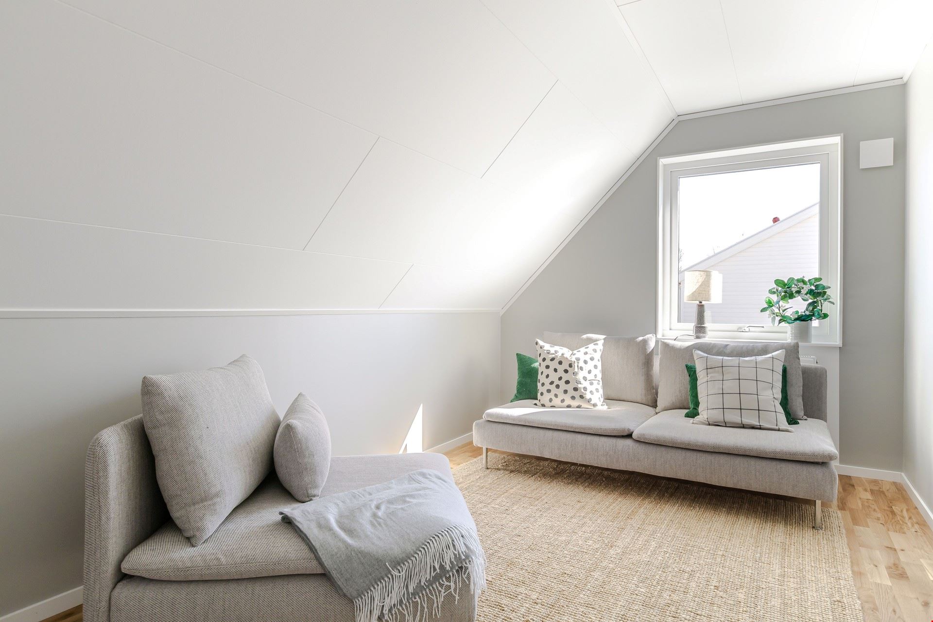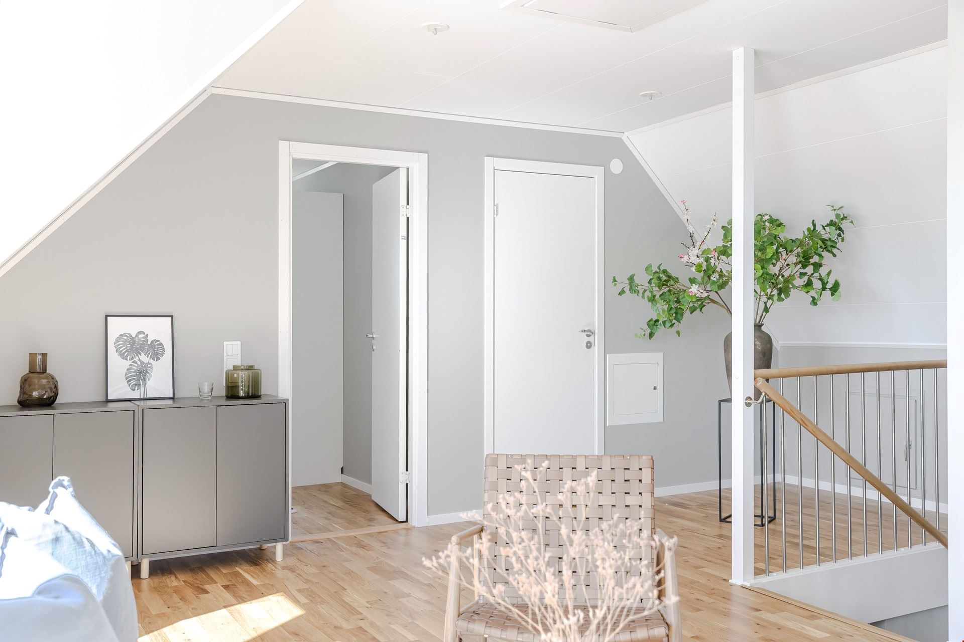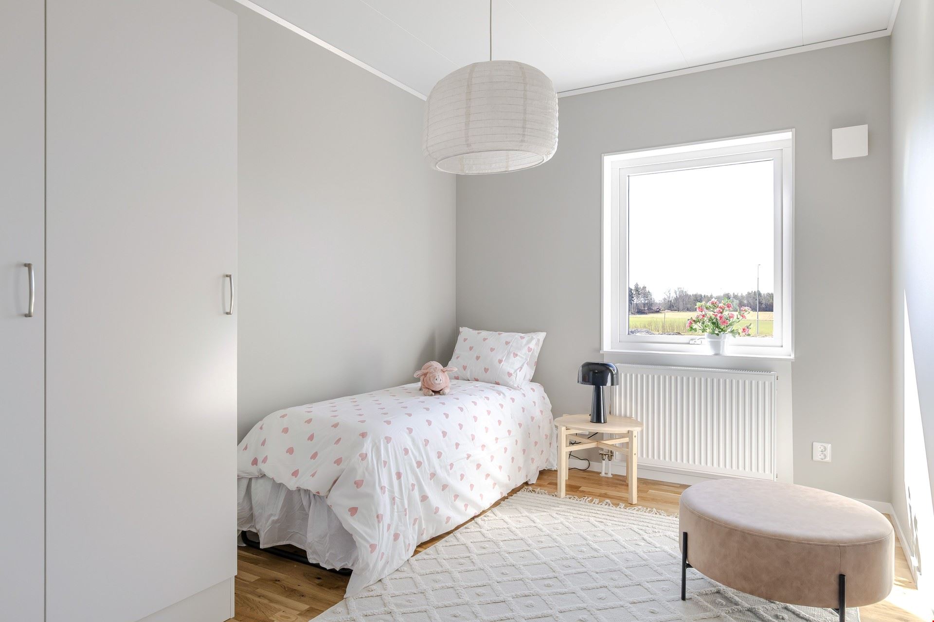 En trappa upp väntar tre ytterligare sovrum, ett badrum med dagsljusinsläpp samt ett mysigt allrum med takkupa. Perfekt som lekrum, filmhörna eller hemmakontor – du väljer själv. Här finns utrymme att växa, samla tonåringar, övernattande gäster eller kanske skapa det där hobbyrummet du länge drömt om.