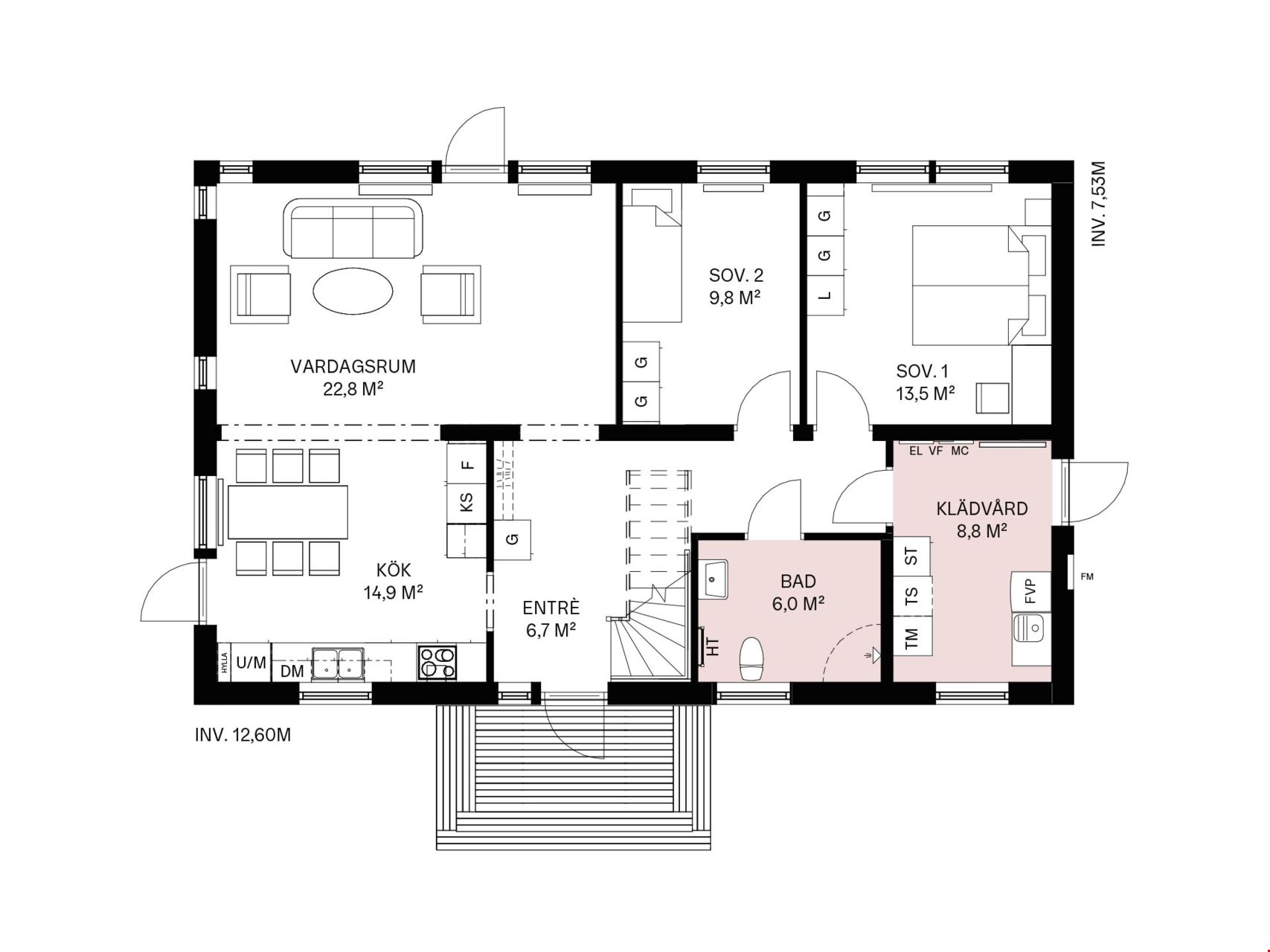 Groventrén är smart placerad och utrustad med tvättmaskin, tvättho och frånluftsvärmepump. Praktiskt, smidigt och genomtänkt – precis som det ska vara.