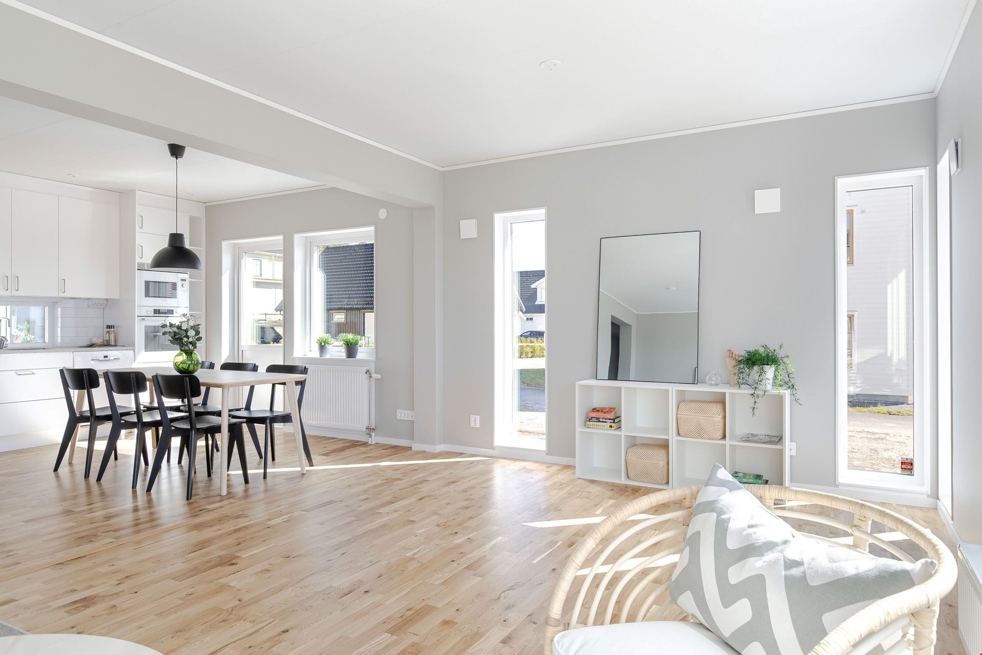 Att huset är inflyttningsklart betyder att du slipper byggstress, oväntade kostnader och långa väntetider. Du flyttar in i ett energieffektivt hem med låg driftskostnad – och utan fastighetsavgift i 15 år. Byggt med totalentreprenad innebär dessutom en trygg och smidig resa hela vägen hem. Som OBOS-medlem har du dessutom möjlighet till extra trygghet om din nuvarande bostad inte skulle säljas i tid.