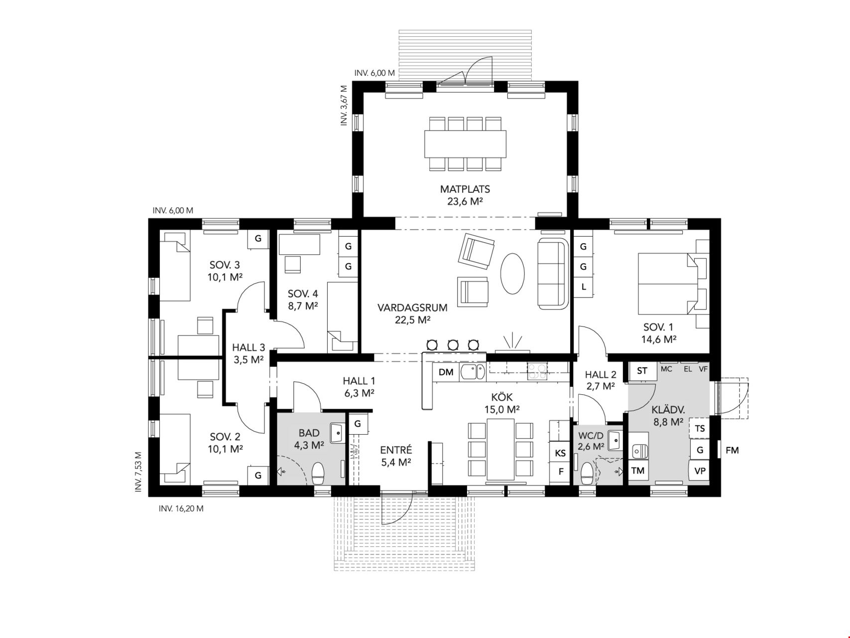 Villa Adelöv är ett 1-planshus om 146 kvm fördelat på 7 rum och kök med egen barn- och vuxenavdelning. Här får du ett hus med fyra sovrum, ett stort vardagsrum med matplats, två badrum och ett väldisponerat kök med bardisk i direkt anslutning till vardagsrummet. Köket kommer från Vedum och är utrustat med vårt nivå 3 kök. Här får du ett kök med höga överskåp, dämpade lådor, mjukstängande luckor, högskåp för inbyggd ugn och micro, integrerad diskmaskin samt rostfri frihängande fläkt. Vardagsrummet och matplatsen bildar tillsammans en samvaroyta om hela 46 kvadratmeter – det blir den perfekta ytan för att samla hela familjen under årets alla festligheter. Båda badrummen är inredda med kakel och klinker, komfortgolvvärme och kommod.